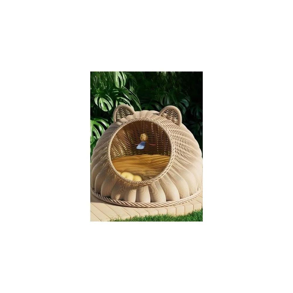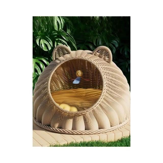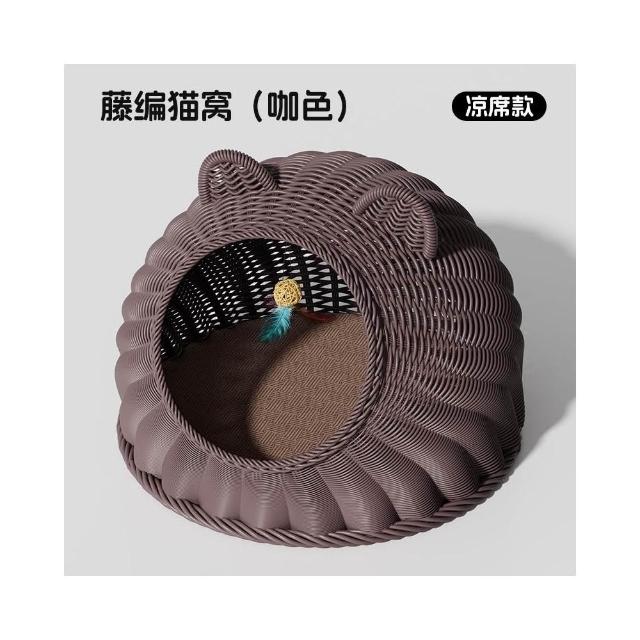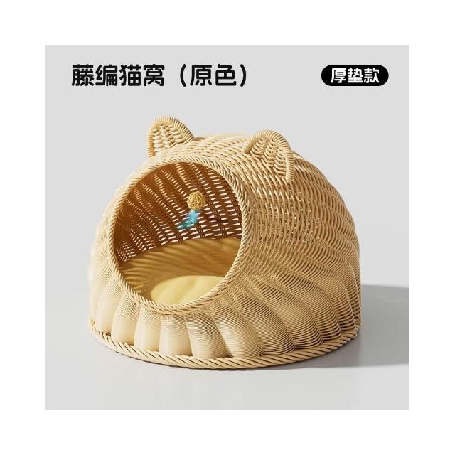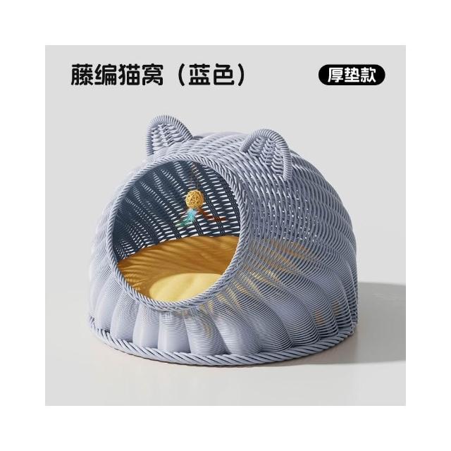 藤編貓窩四季通用夏天夏季半封閉式安全感墊子鑽貓門洞涼窩可水洗