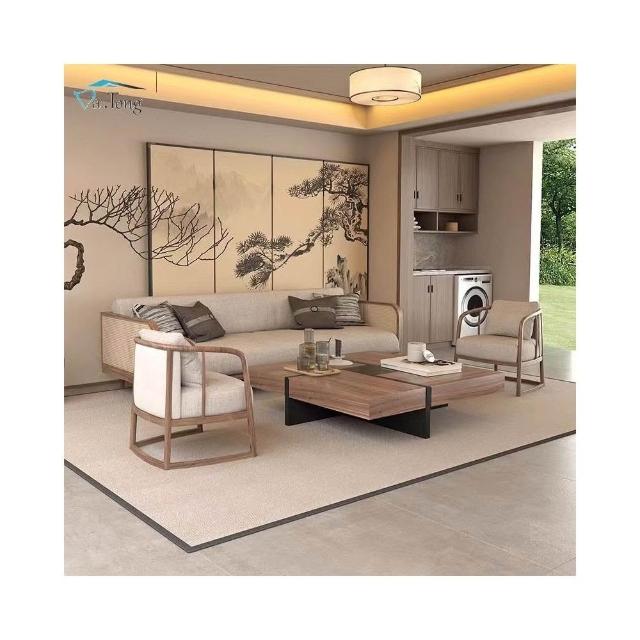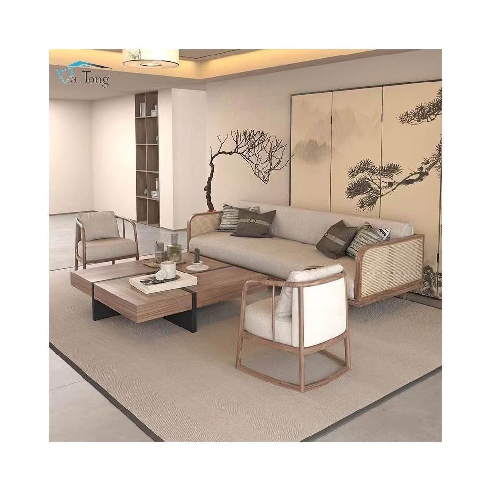 侘寂風洽談沙發組合現代簡約酒店大堂藤編沙發民宿大廳接待區沙發