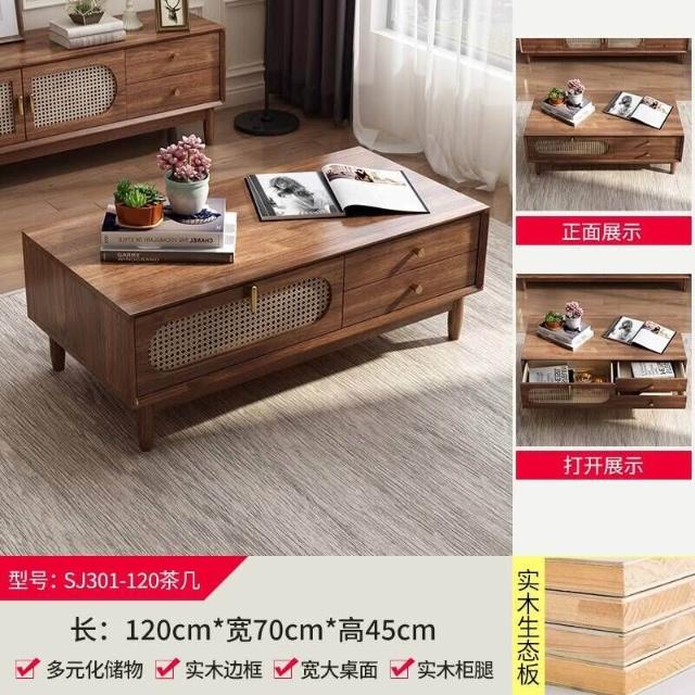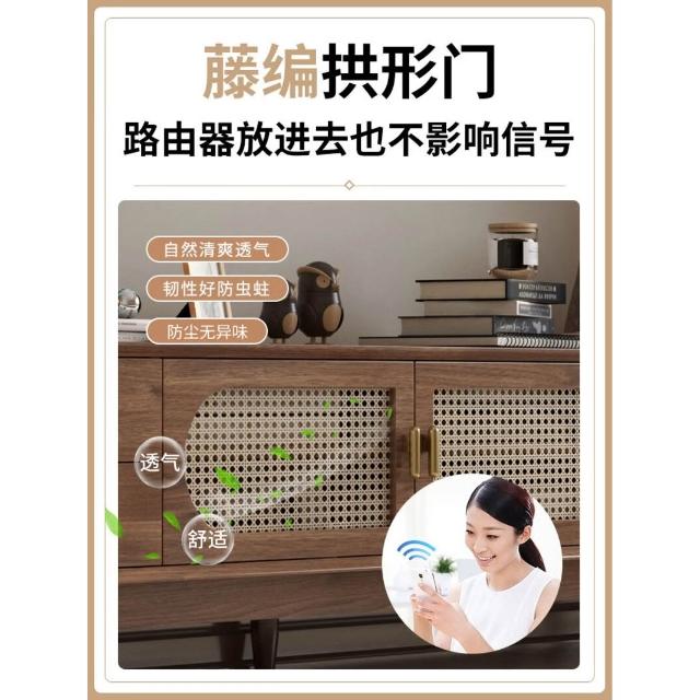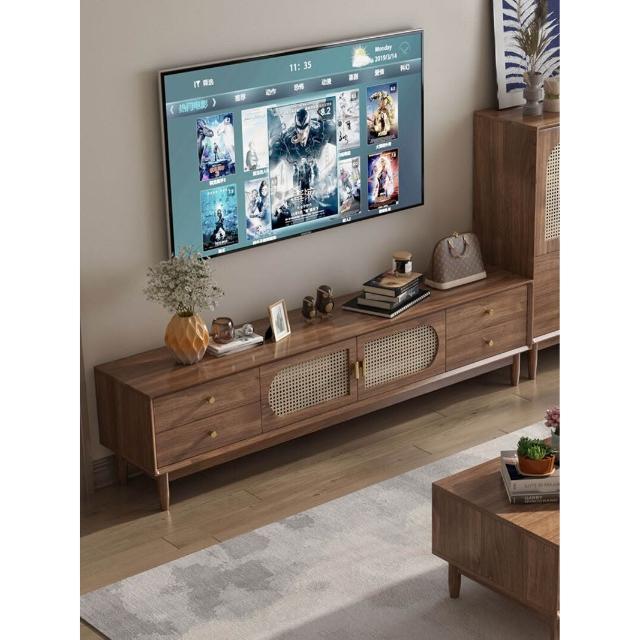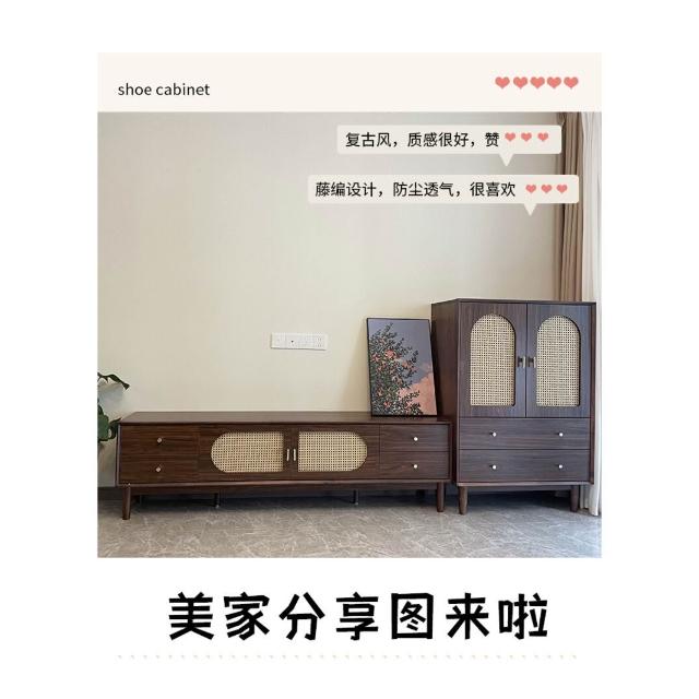 實木中古風電視機櫃藤編茶幾2025新款客廳家用法式落地儲物櫃