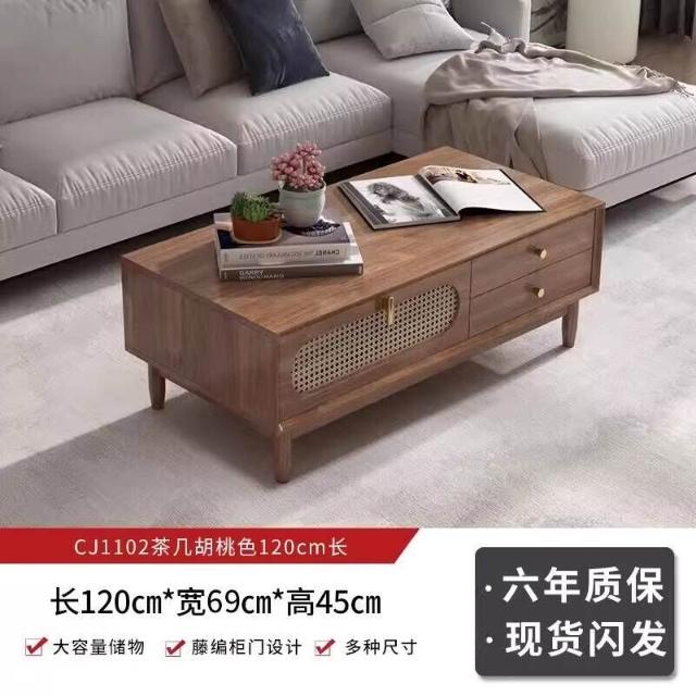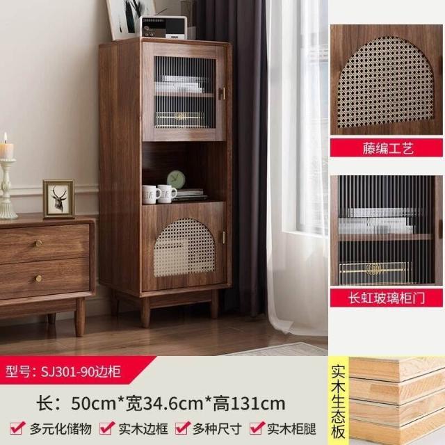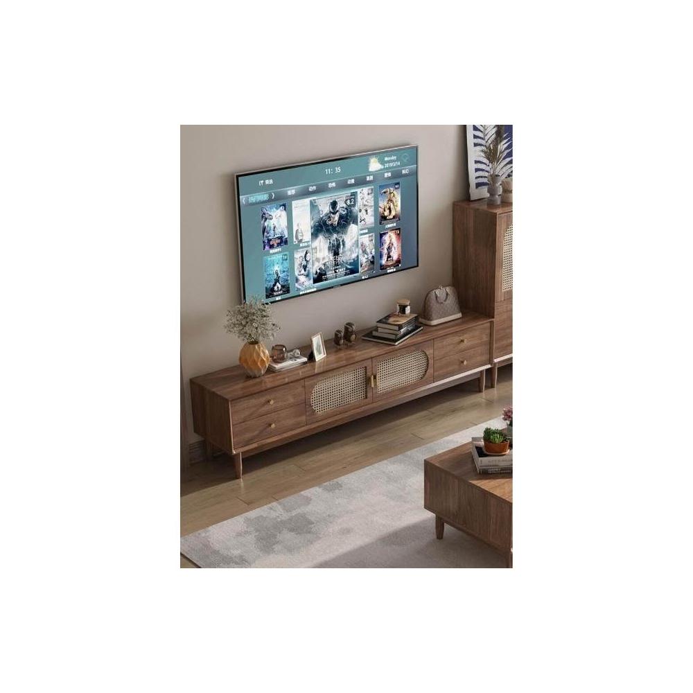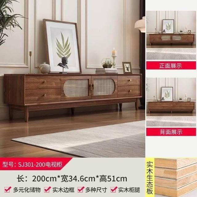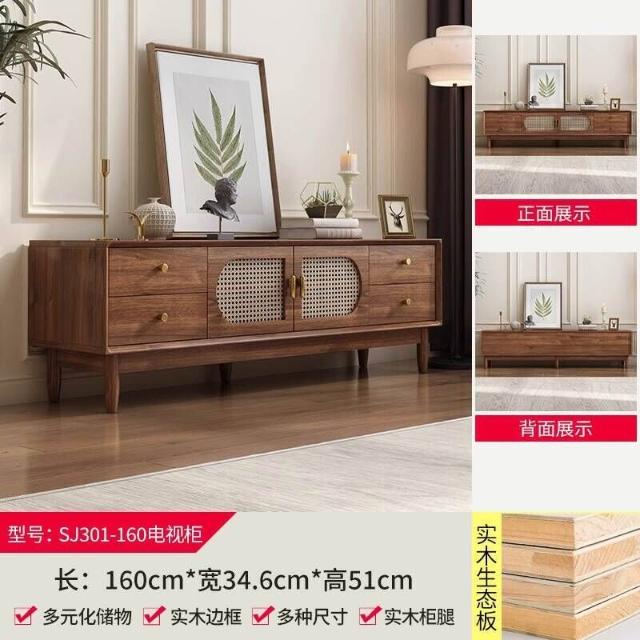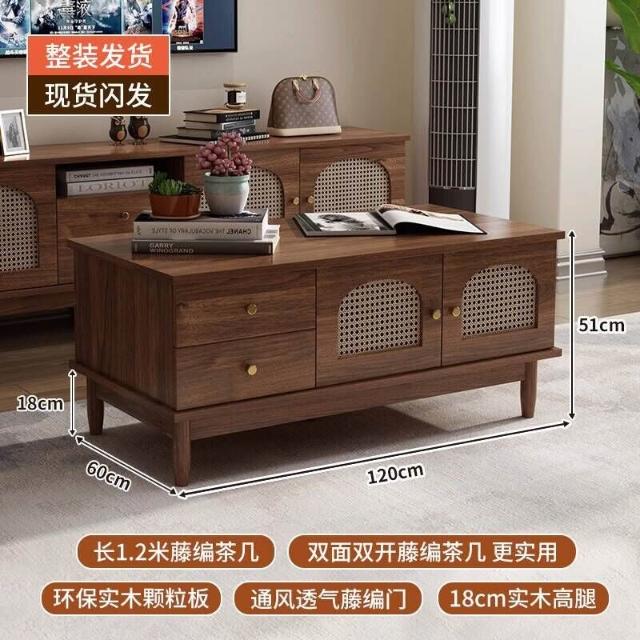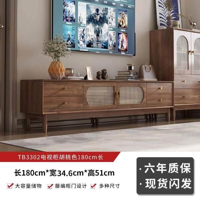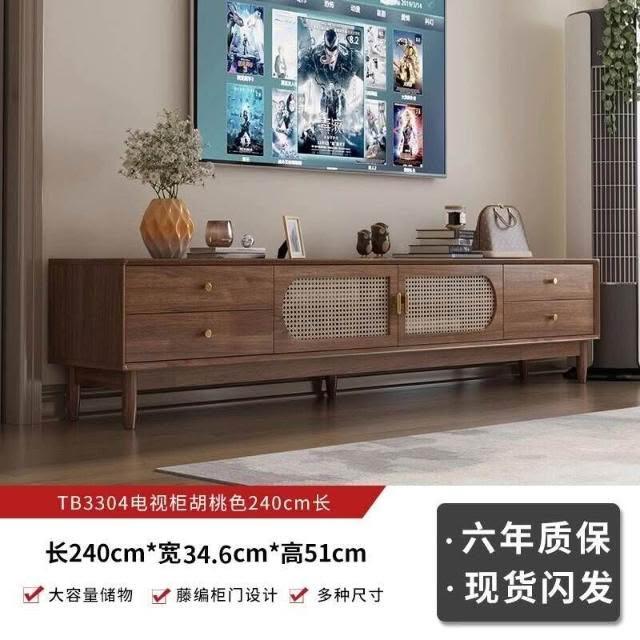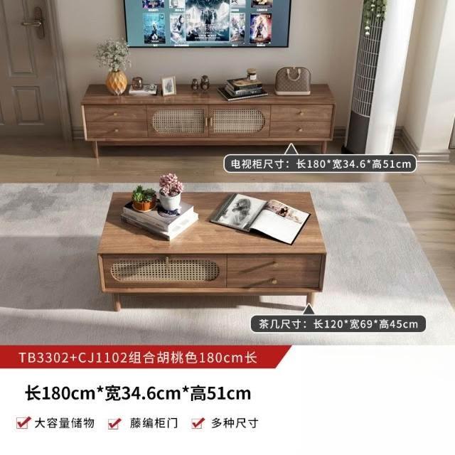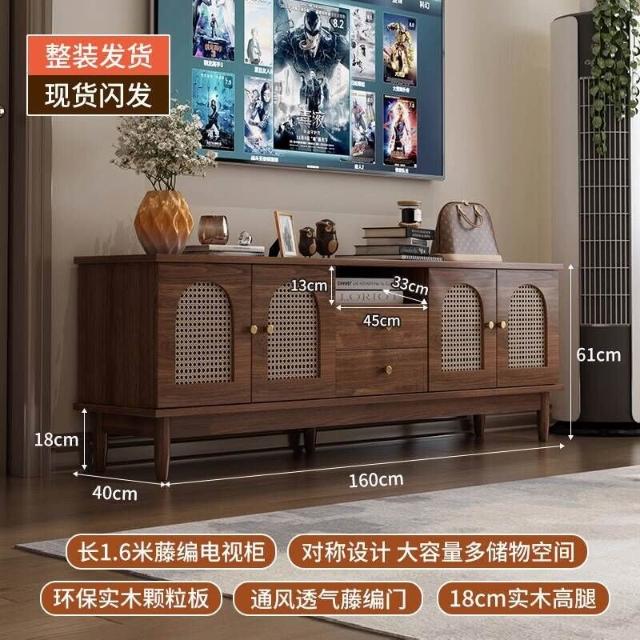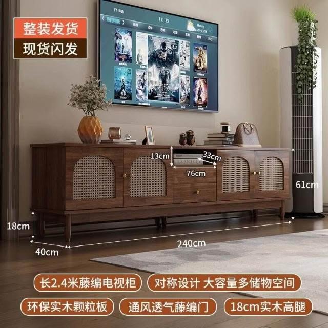 實木中古風電視機櫃藤編茶幾2025新款客廳家用法式落地儲物櫃