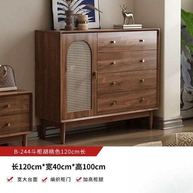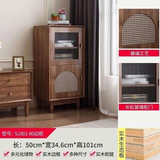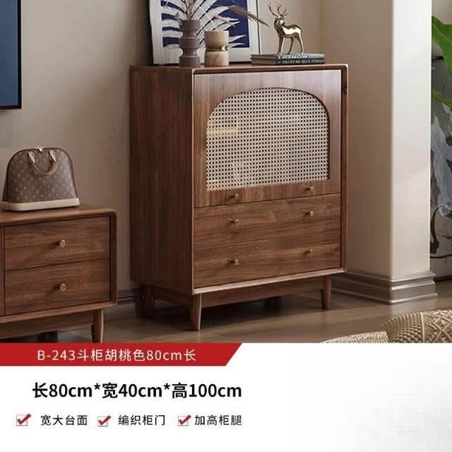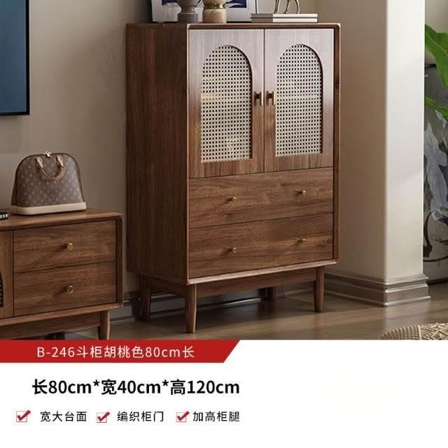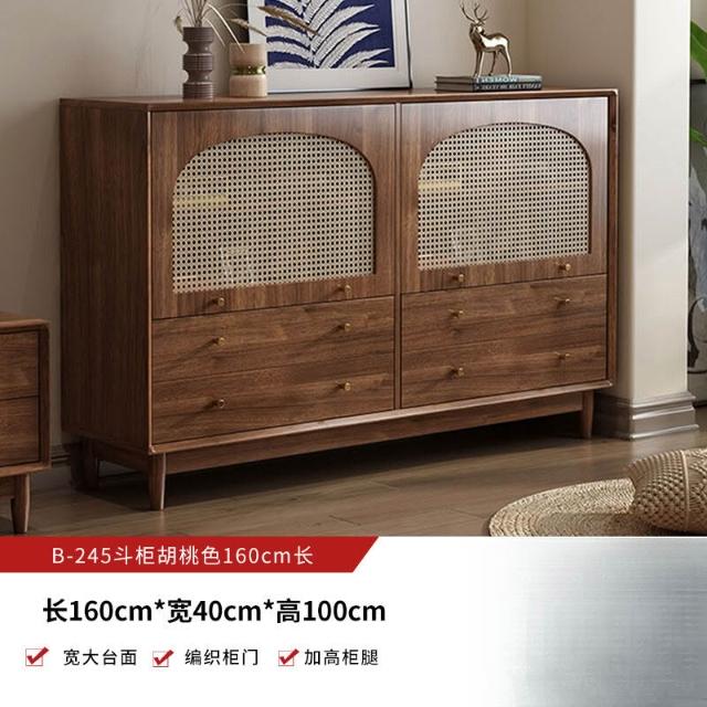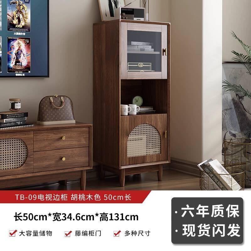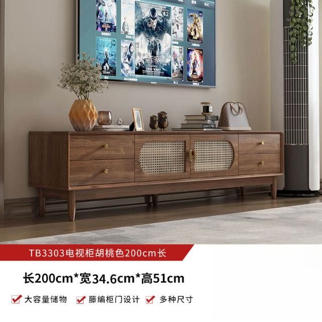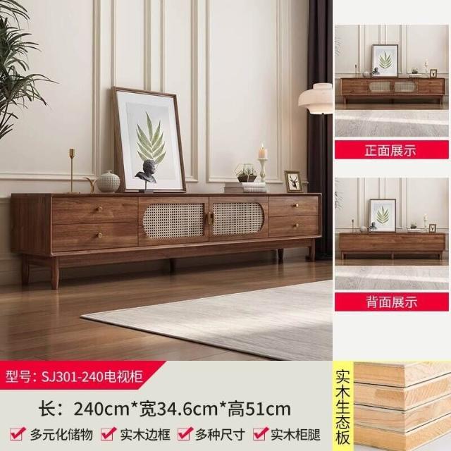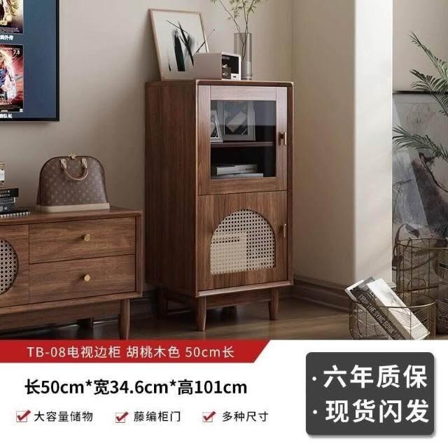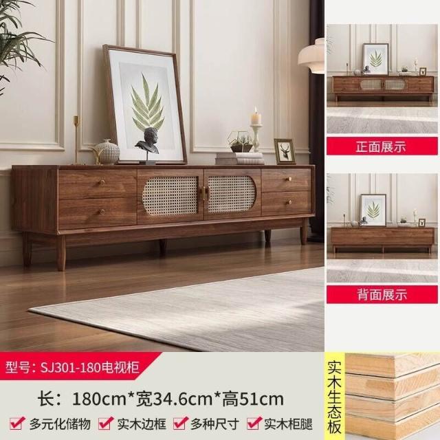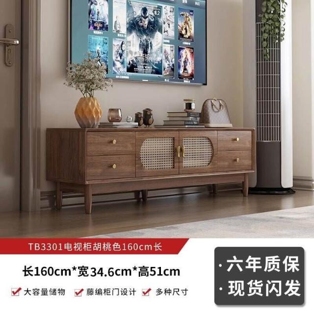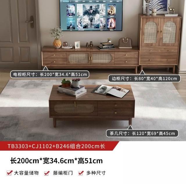 實木中古風電視機櫃藤編茶幾2025新款客廳家用法式落地儲物櫃