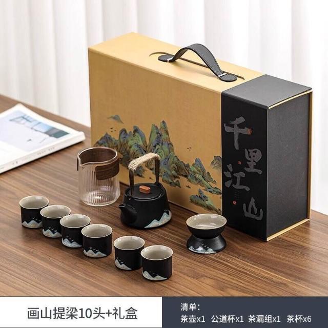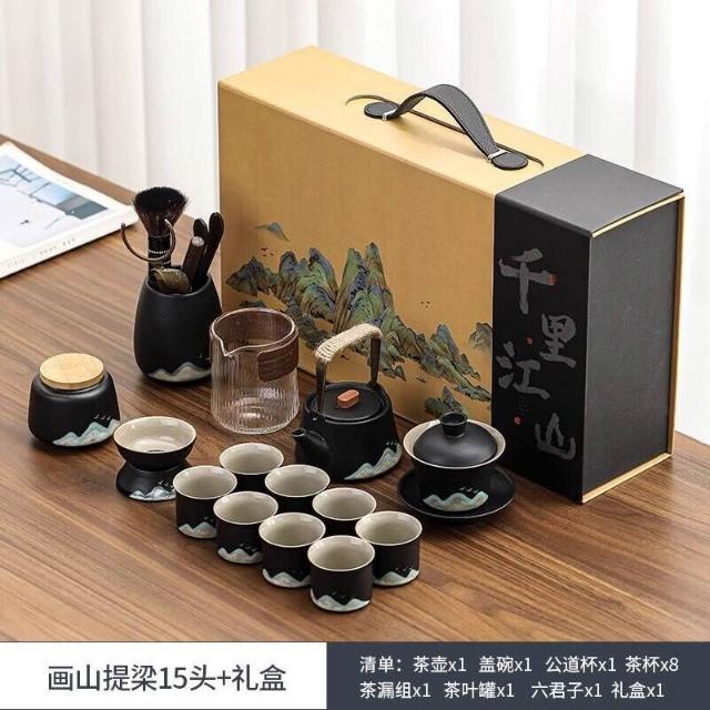 茶具手繪功夫茶具套裝家用茶盤泡茶具整套茶壺茶杯商務會客送禮