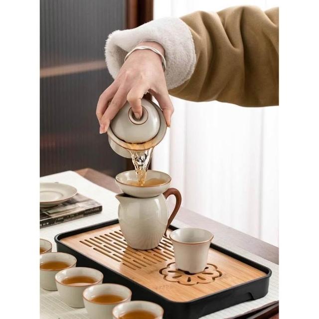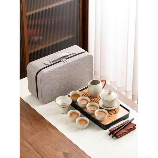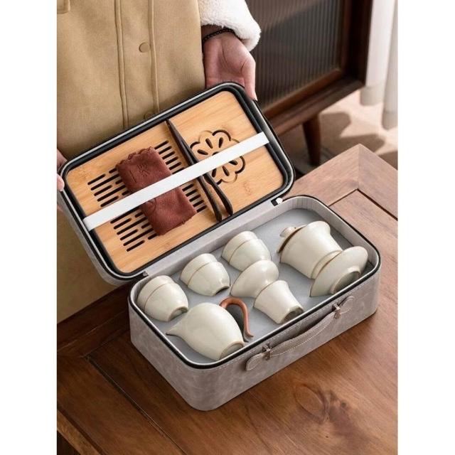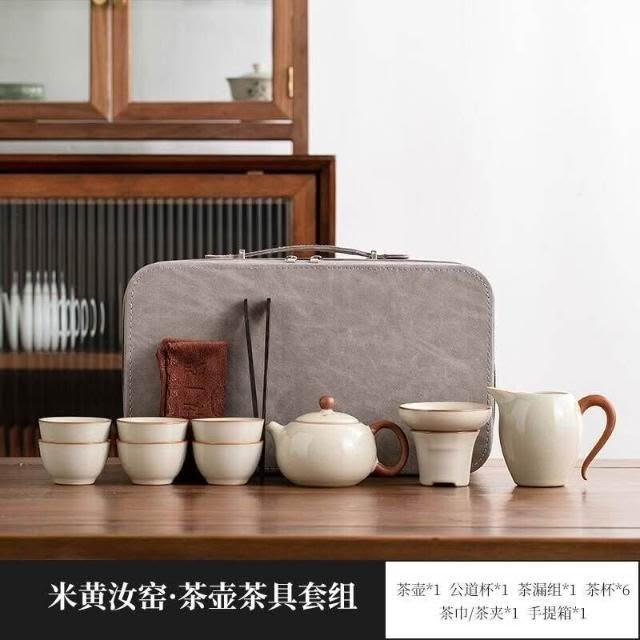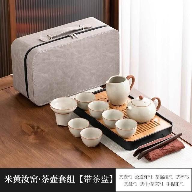黃汝窯旅行茶具套裝家用功夫戶外便攜式喝茶2025新款蓋碗茶杯茶壺
