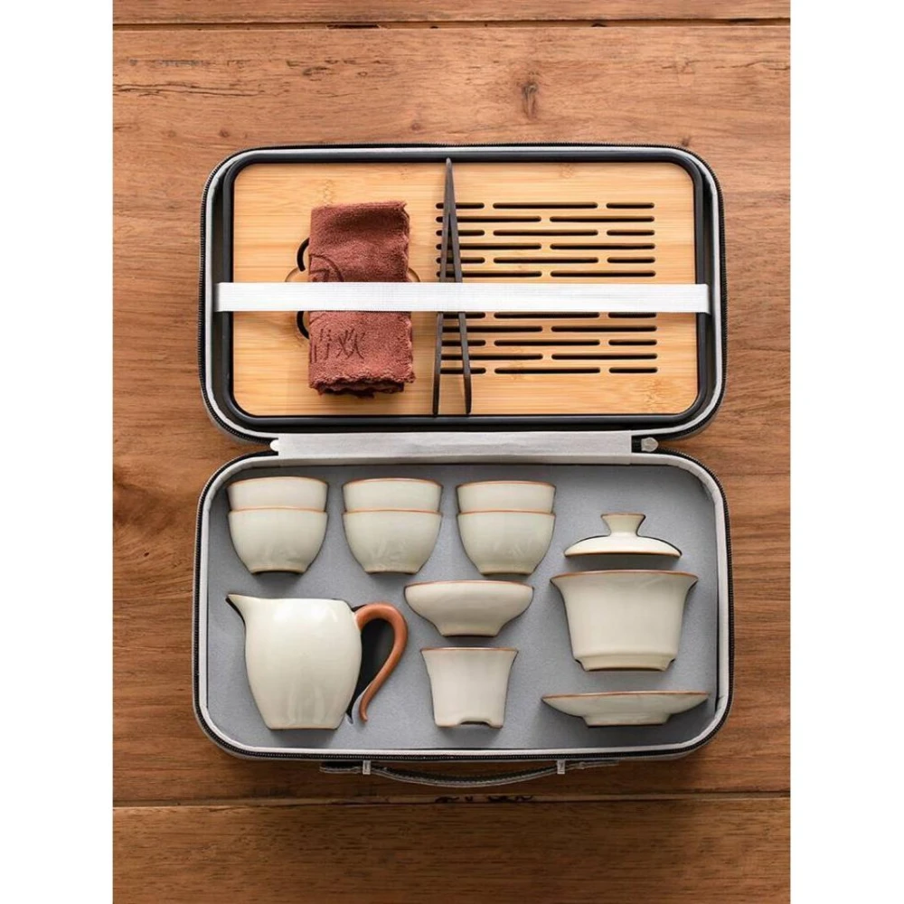 黃汝窯旅行茶具套裝家用功夫戶外便攜式喝茶2025新款蓋碗茶杯茶壺