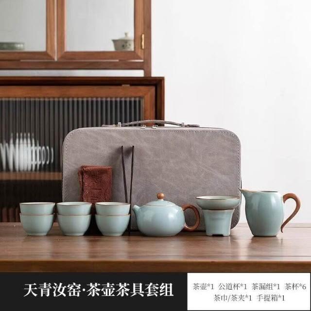 黃汝窯旅行茶具套裝家用功夫戶外便攜式喝茶2025新款蓋碗茶杯茶壺