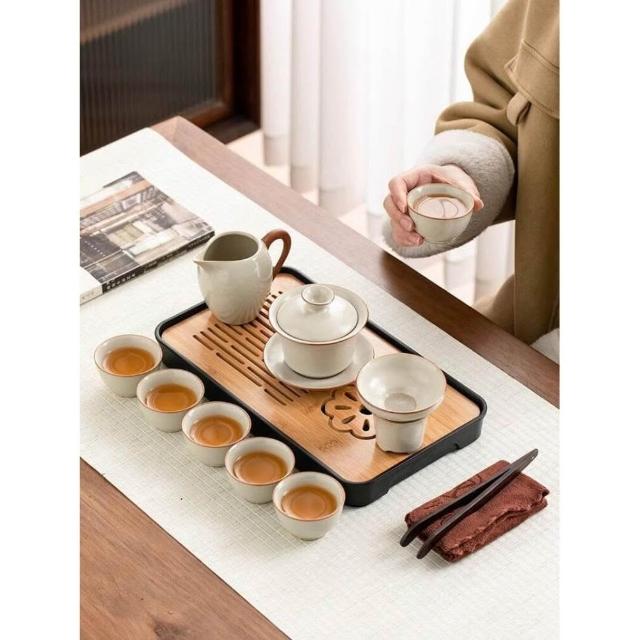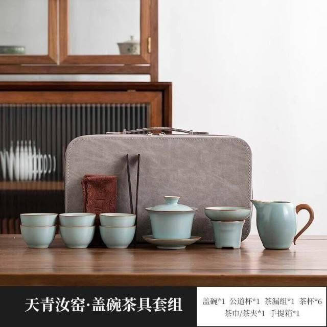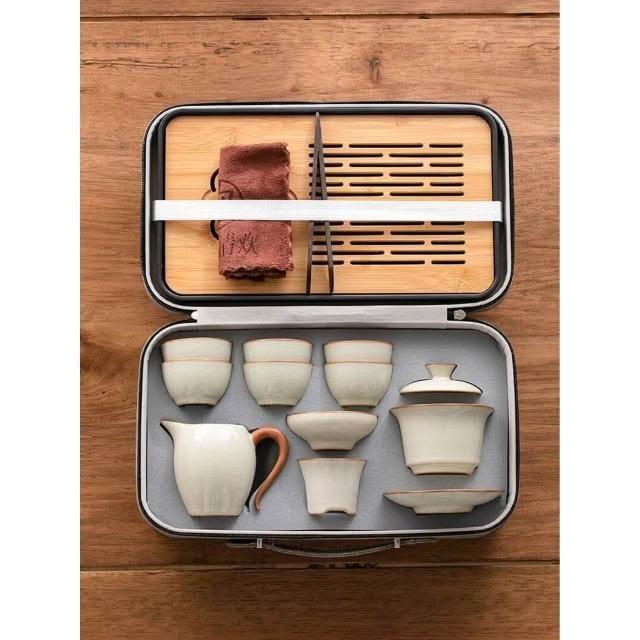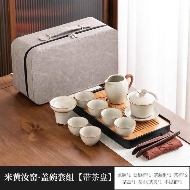 黃汝窯旅行茶具套裝家用功夫戶外便攜式喝茶2025新款蓋碗茶杯茶壺