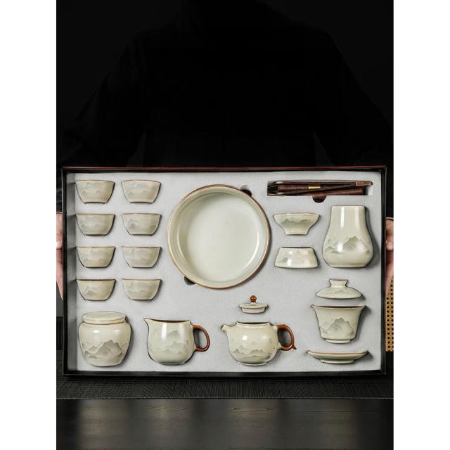 2025新款汝窯茶具套裝一整套家用禮盒裝輕奢高檔泡茶壺送爸爸長輩
