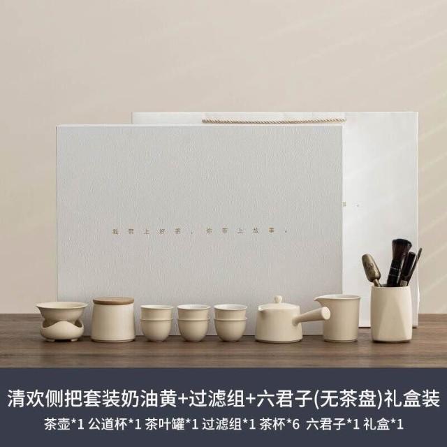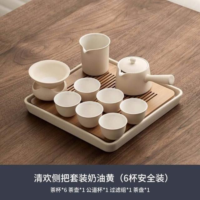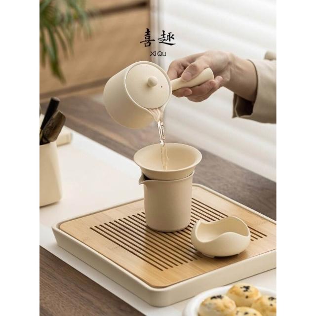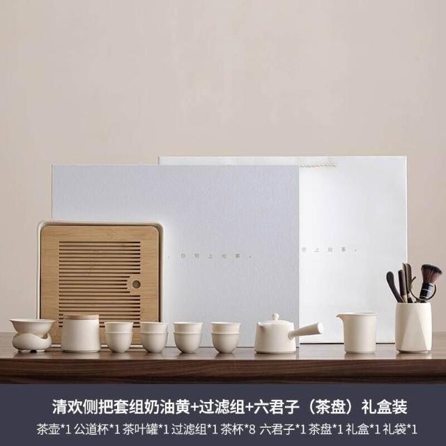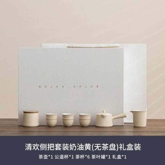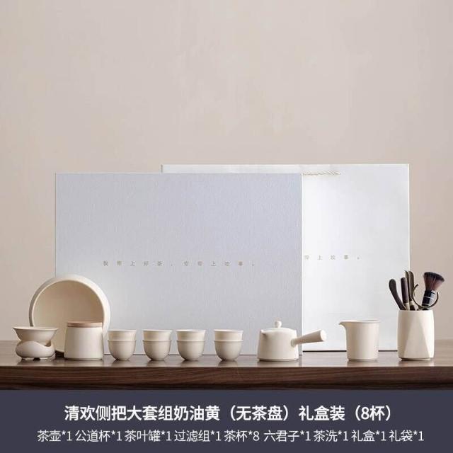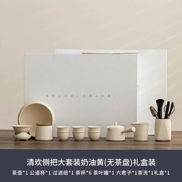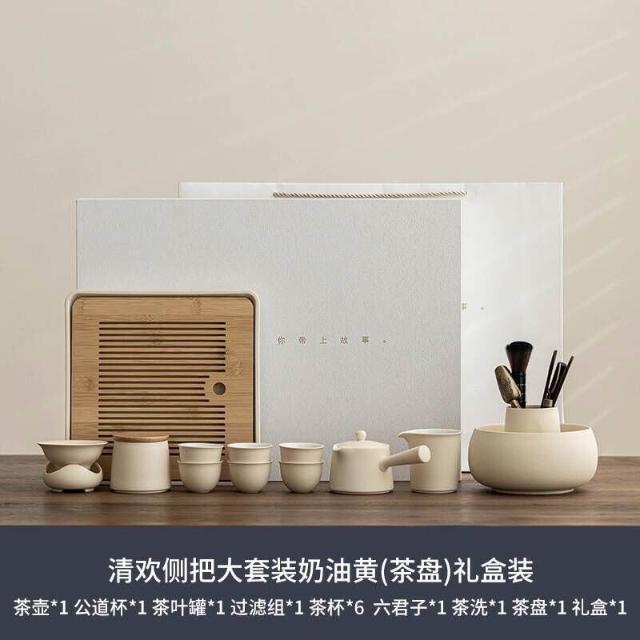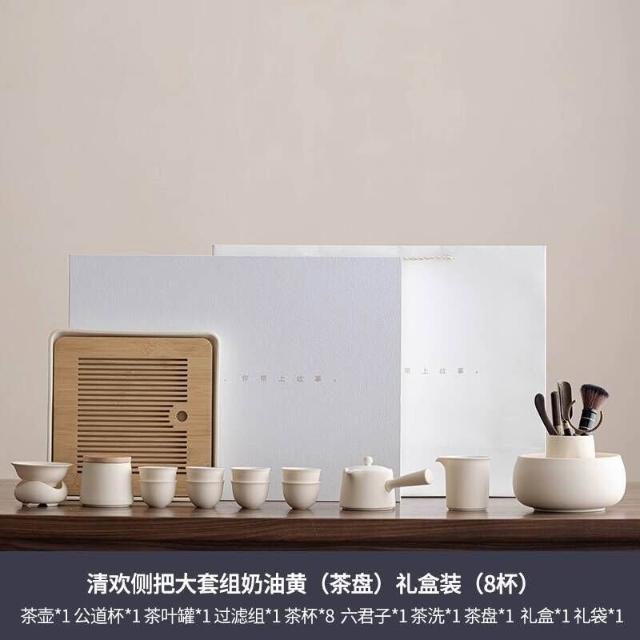 輕奢高檔側把壺功夫茶具套裝中式家用陶瓷喝茶杯幹泡盤伴手禮