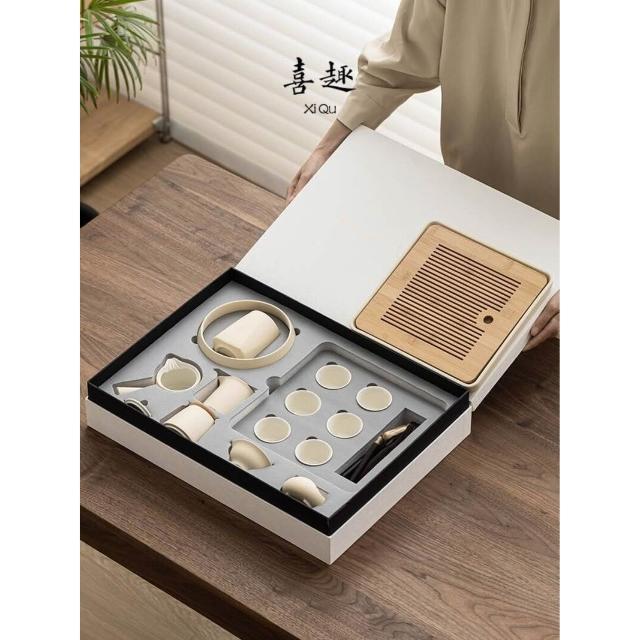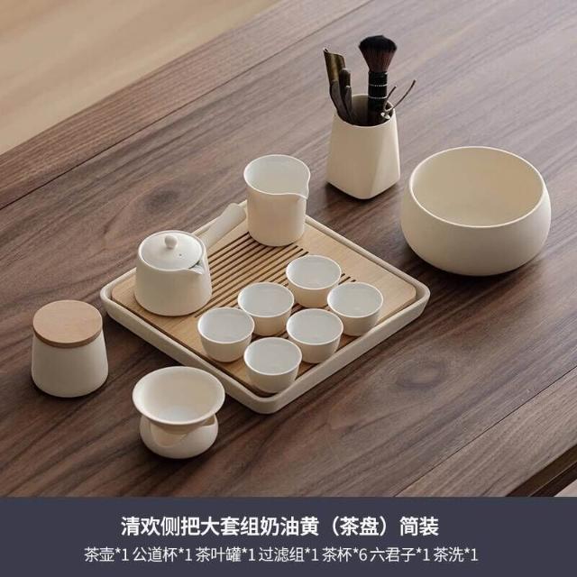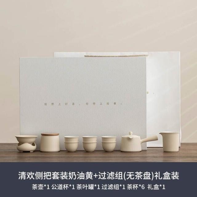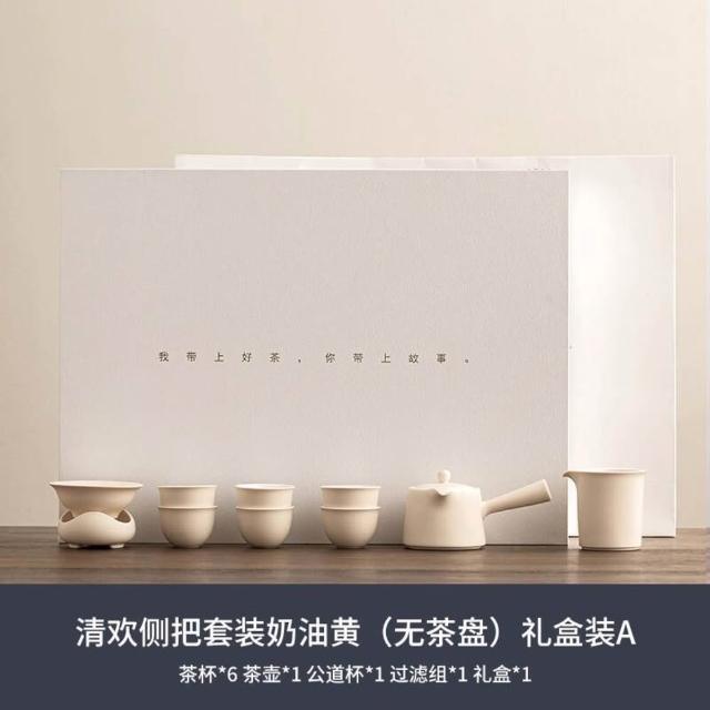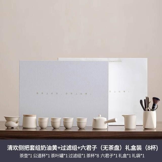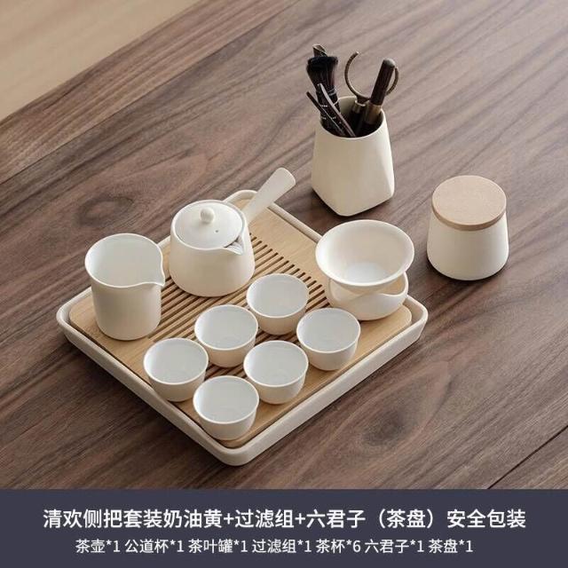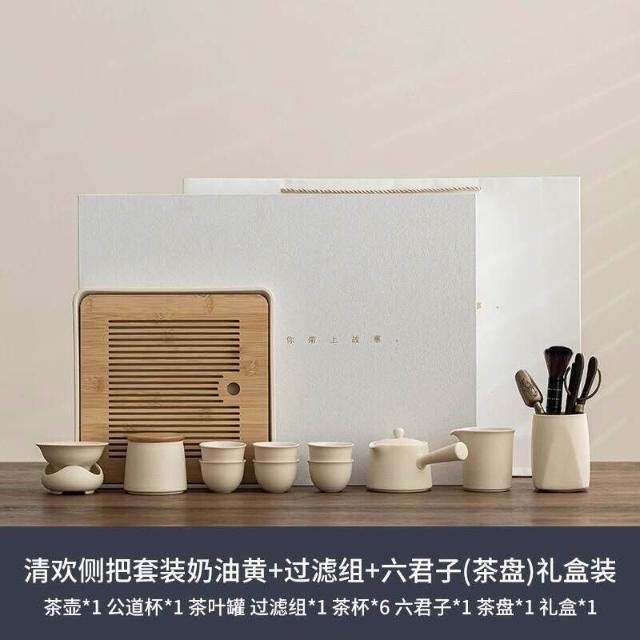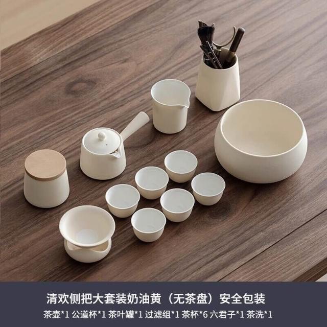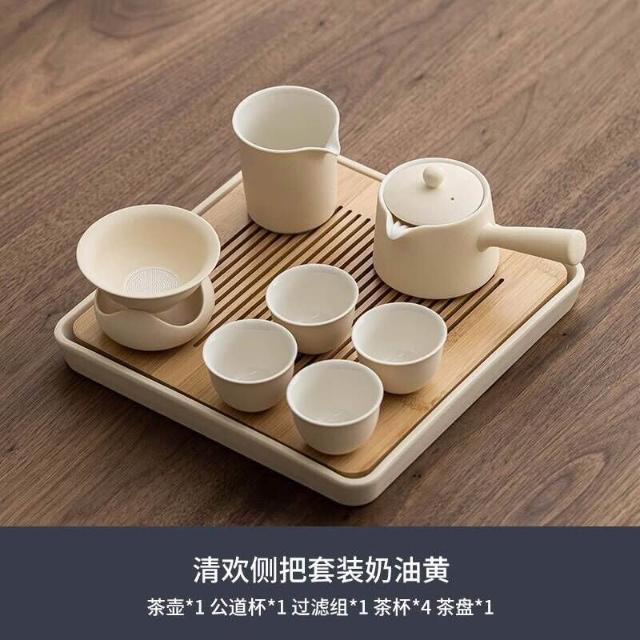 輕奢高檔側把壺功夫茶具套裝中式家用陶瓷喝茶杯幹泡盤伴手禮
