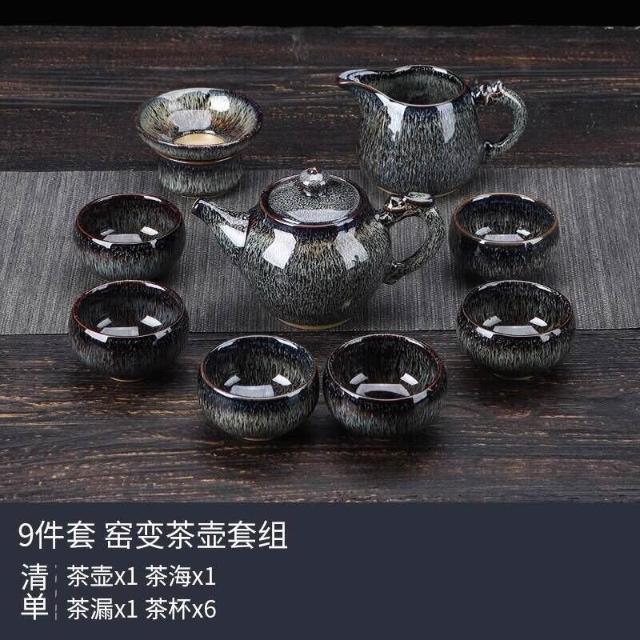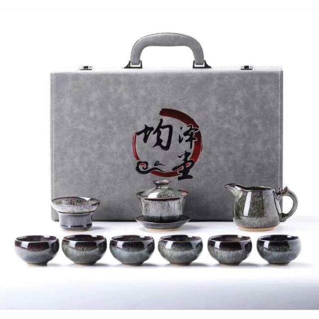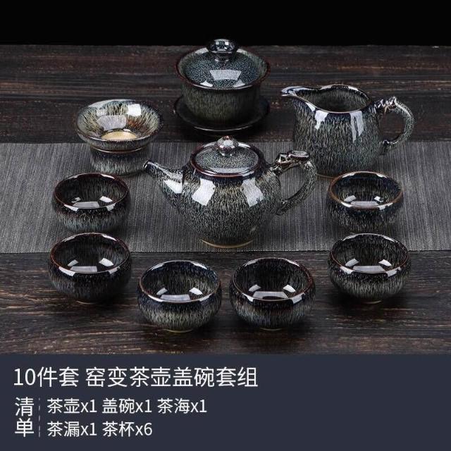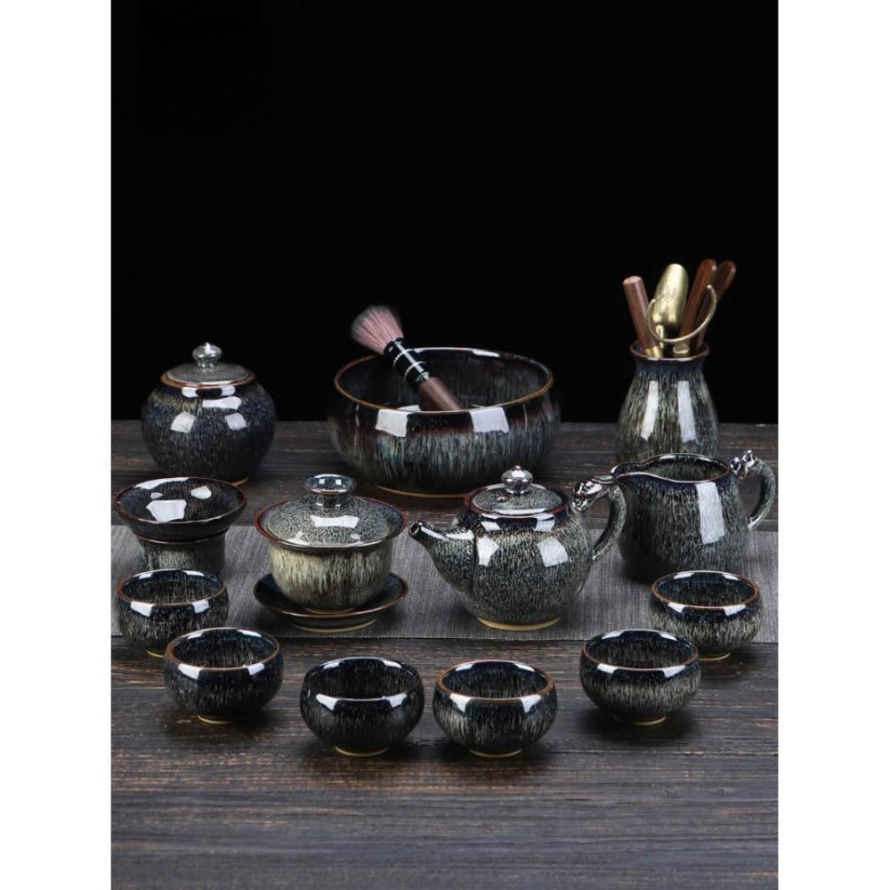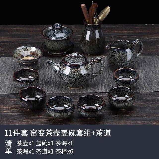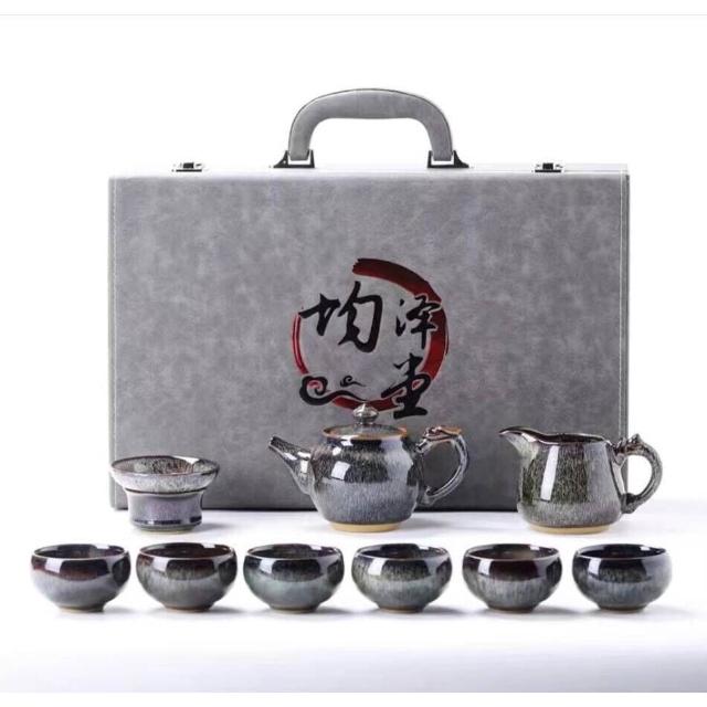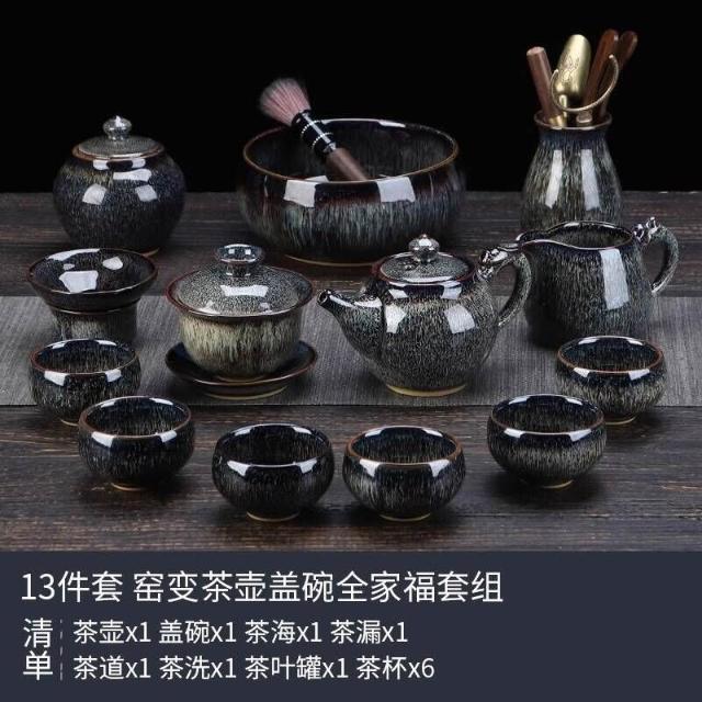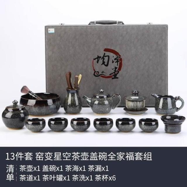 窯變功夫茶具套裝建盞家用陶瓷泡茶壺蓋碗中式商務禮盒送人