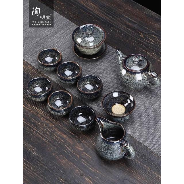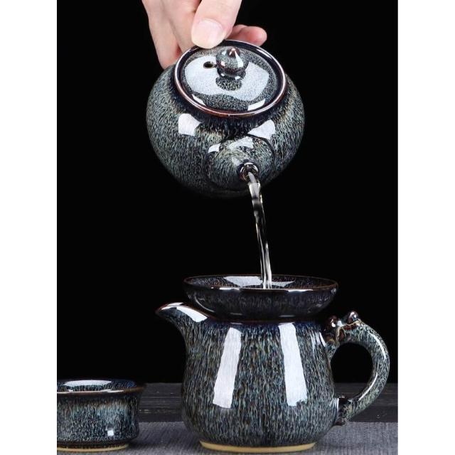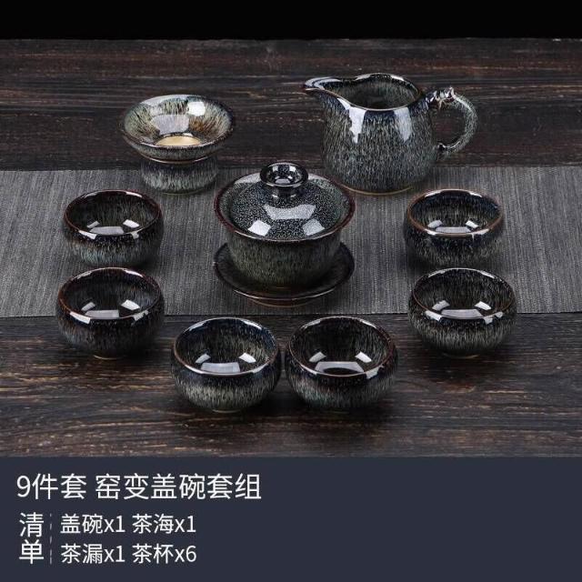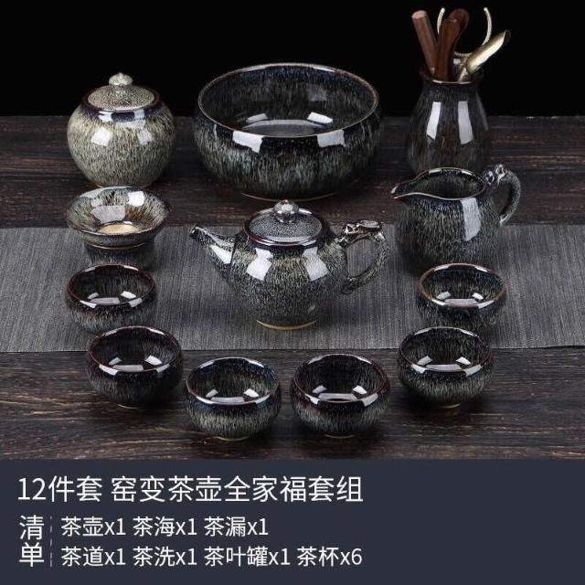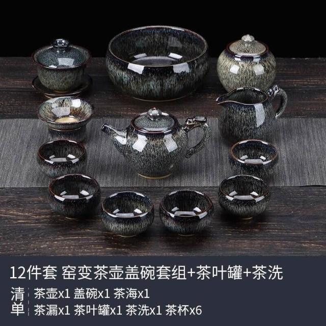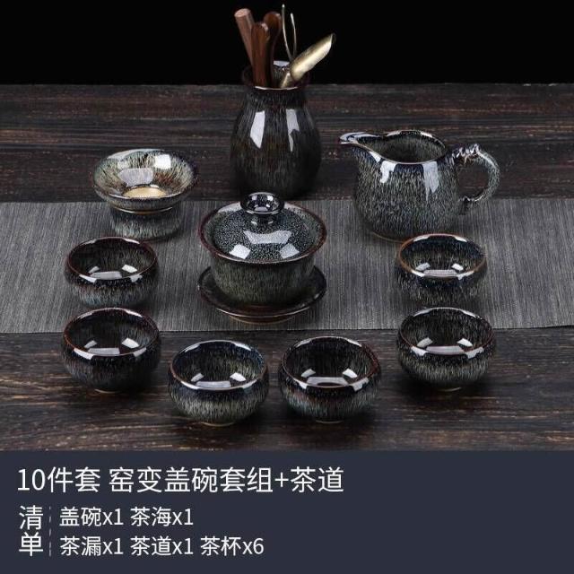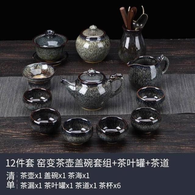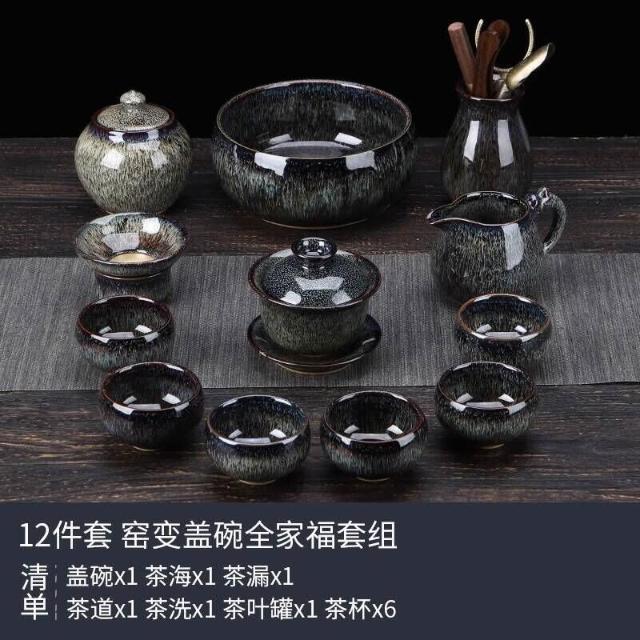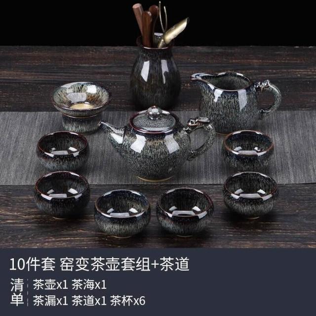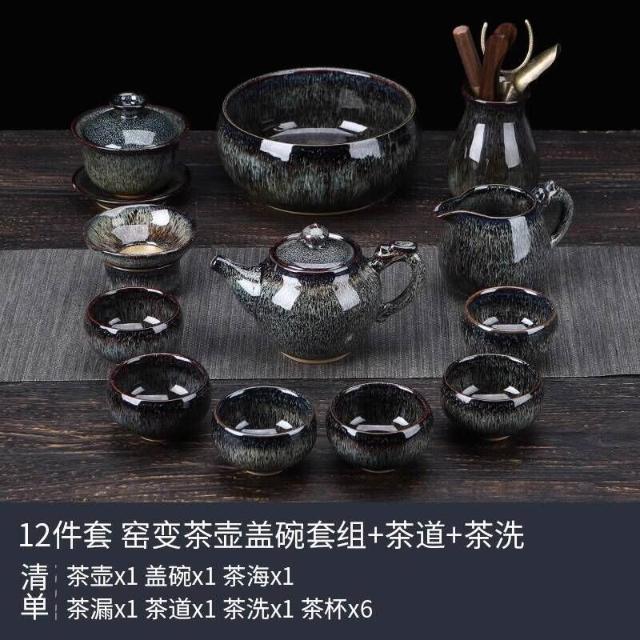 窯變功夫茶具套裝建盞家用陶瓷泡茶壺蓋碗中式商務禮盒送人