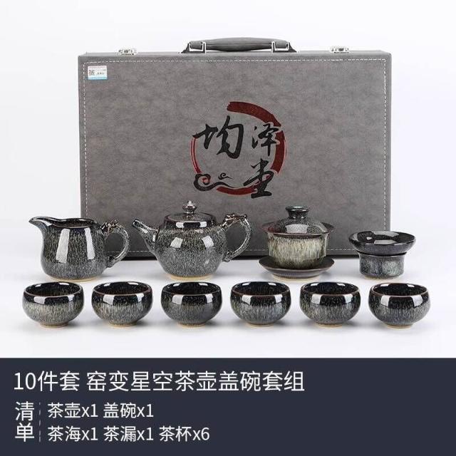 窯變功夫茶具套裝建盞家用陶瓷泡茶壺蓋碗中式商務禮盒送人