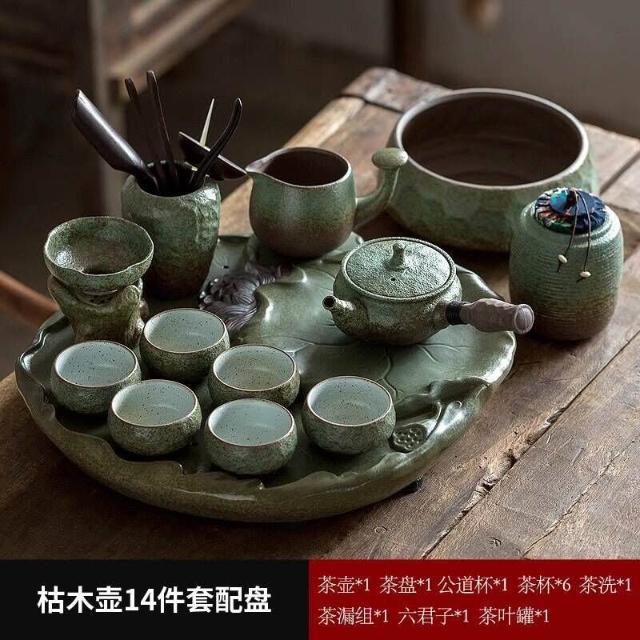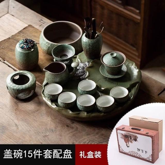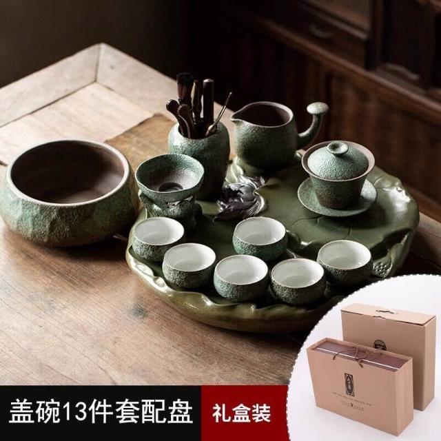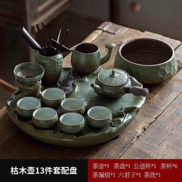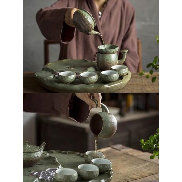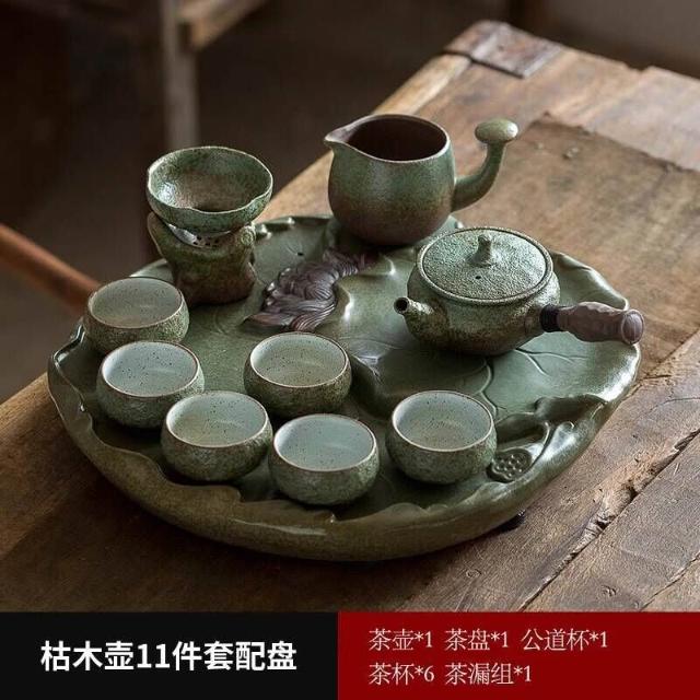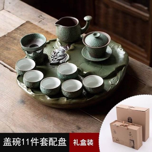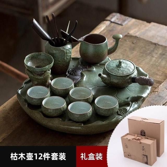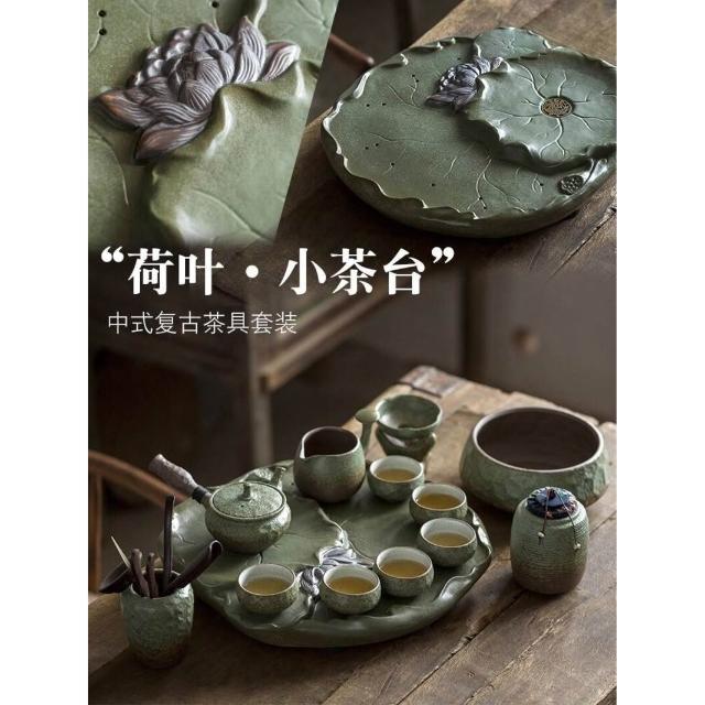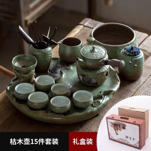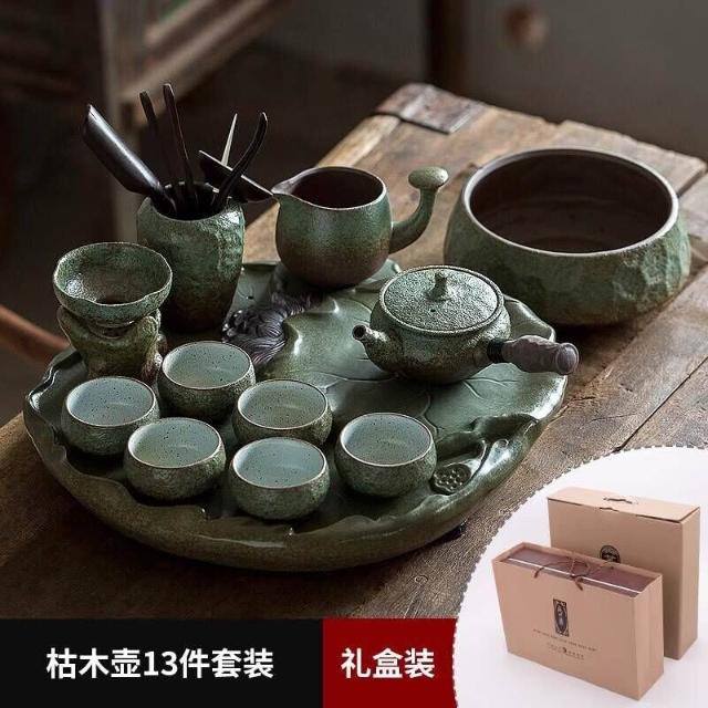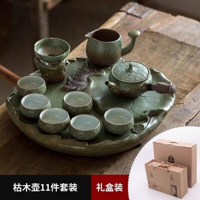 中式粗陶功夫茶具套裝家用陶瓷茶盤商務禮品送領導教師節禮物