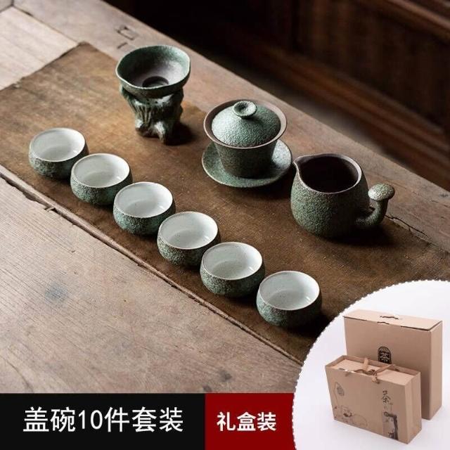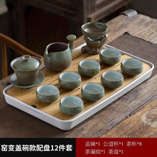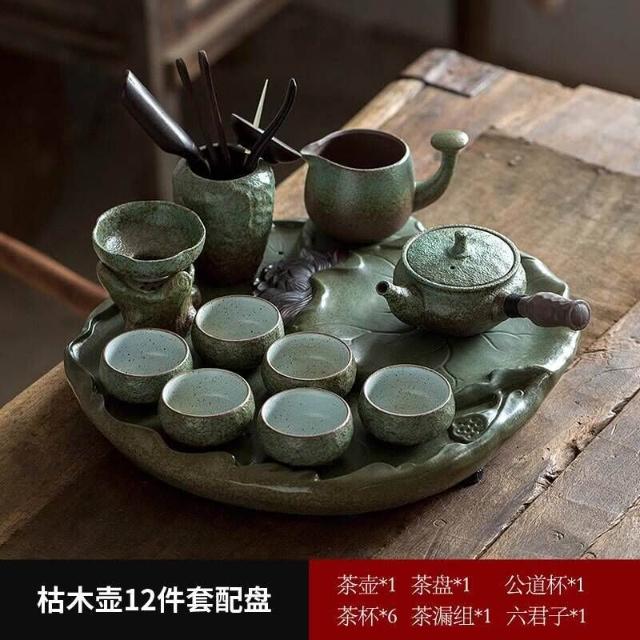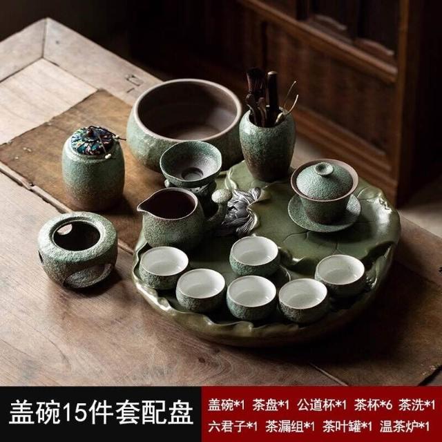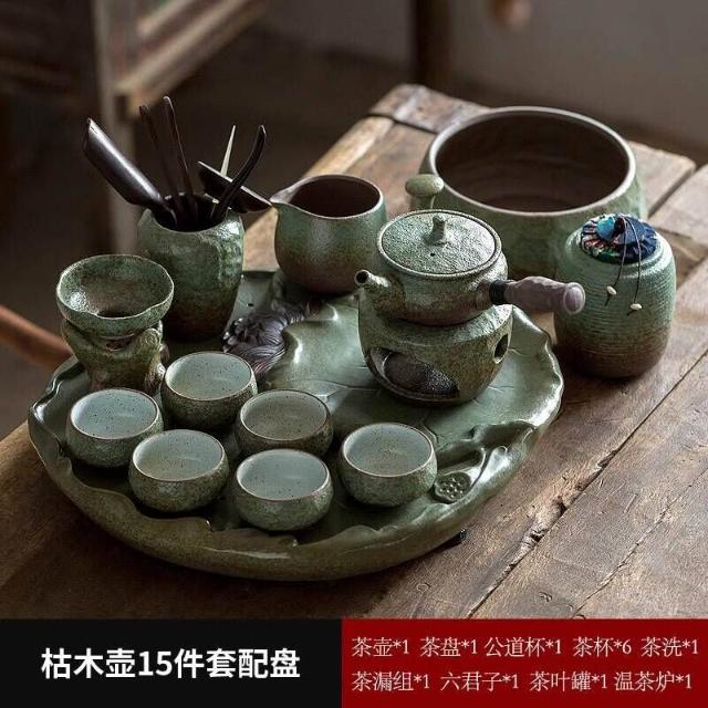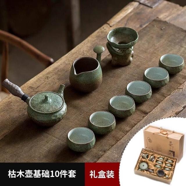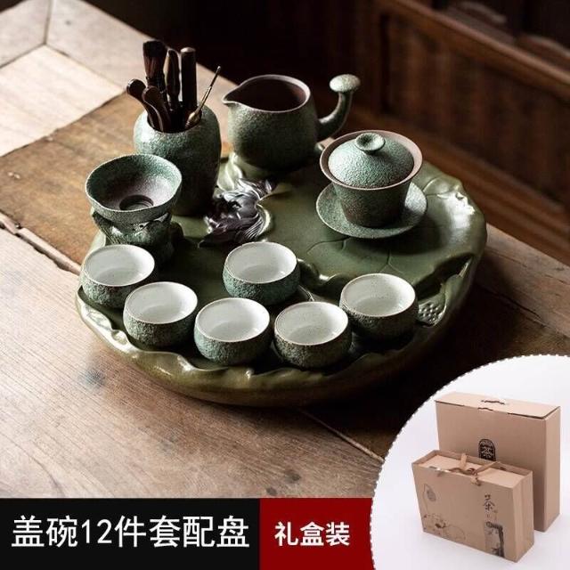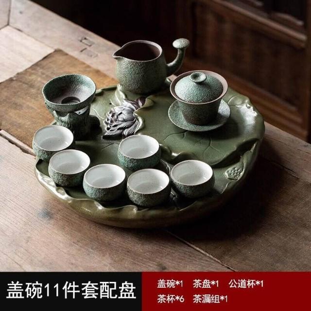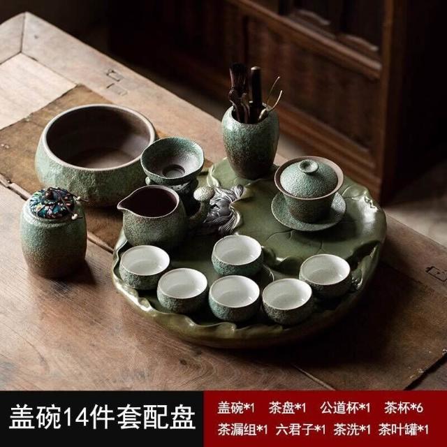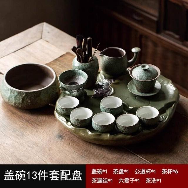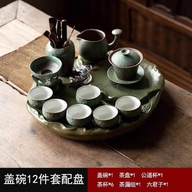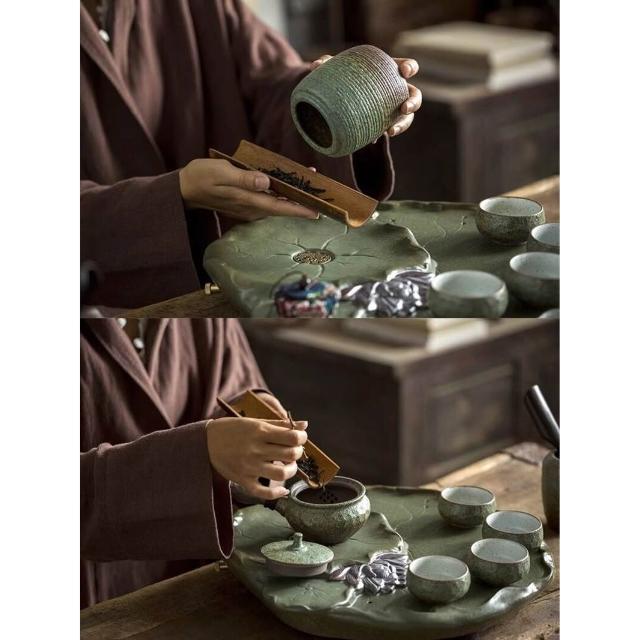 中式粗陶功夫茶具套裝家用陶瓷茶盤商務禮品送領導教師節禮物