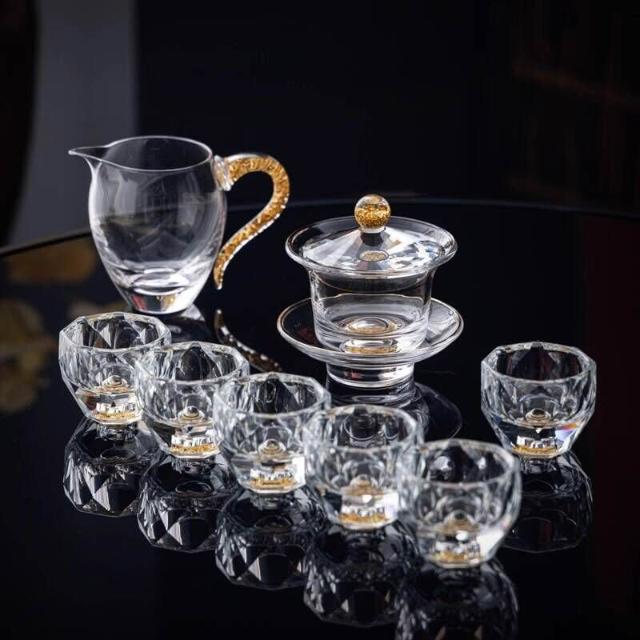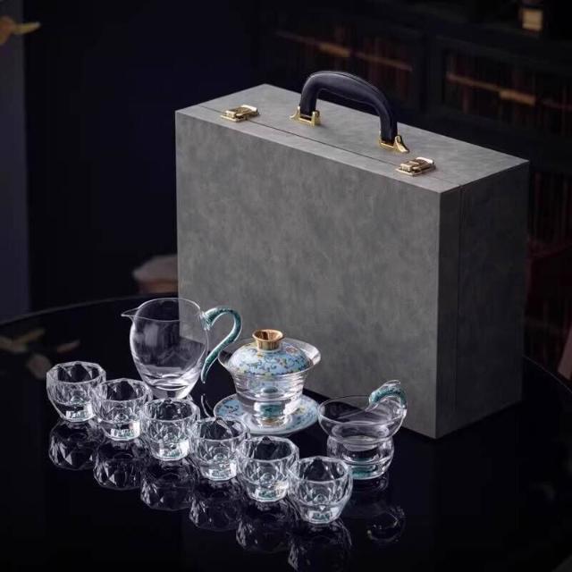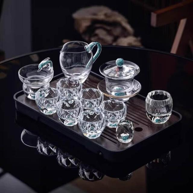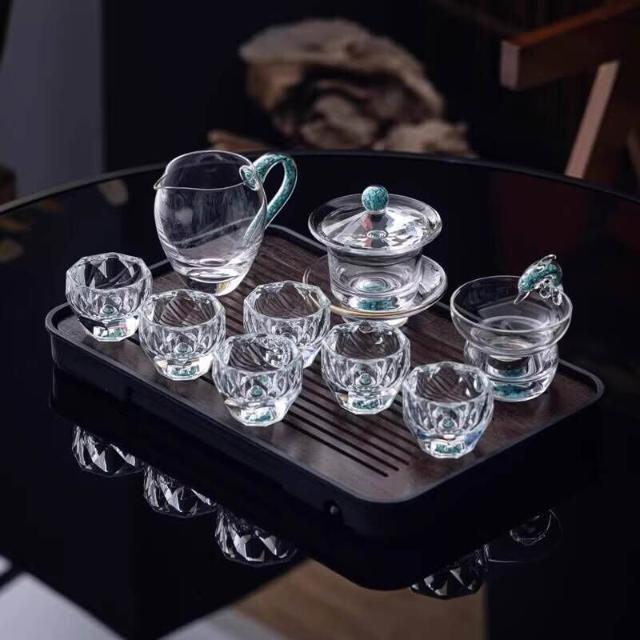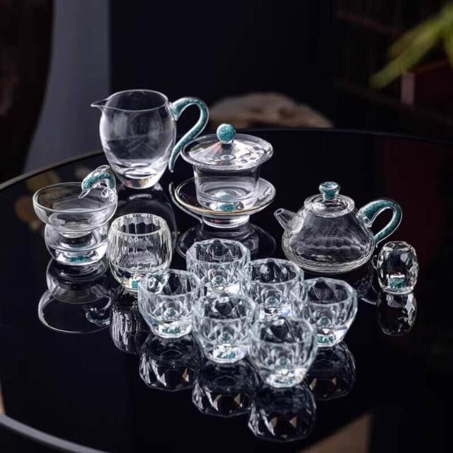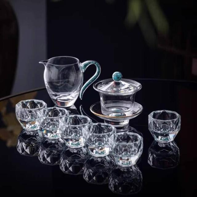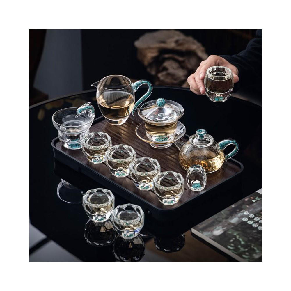 綠松石水晶玻璃茶具套裝輕奢蓋碗茶杯高端家用整套功夫茶具