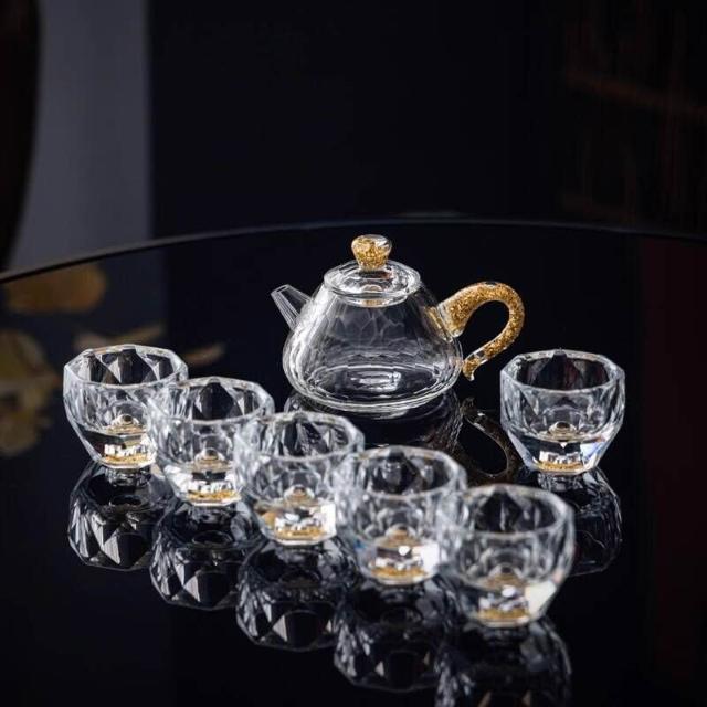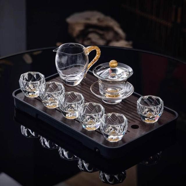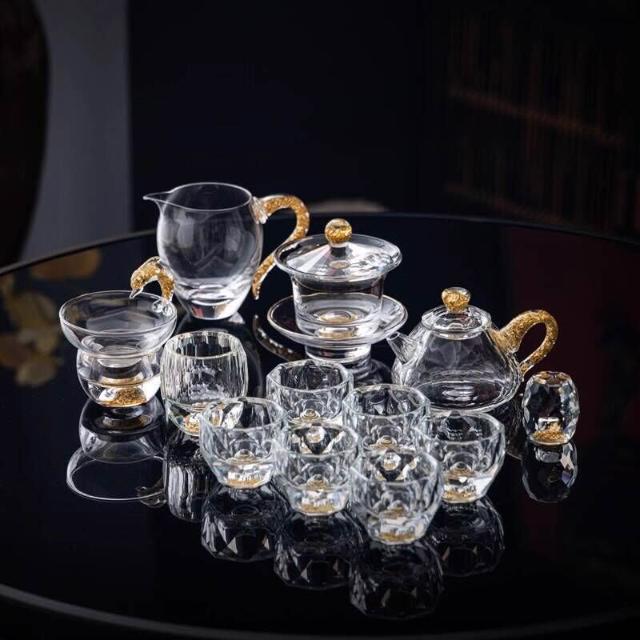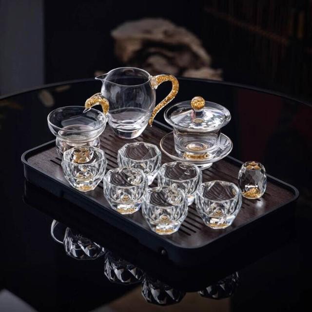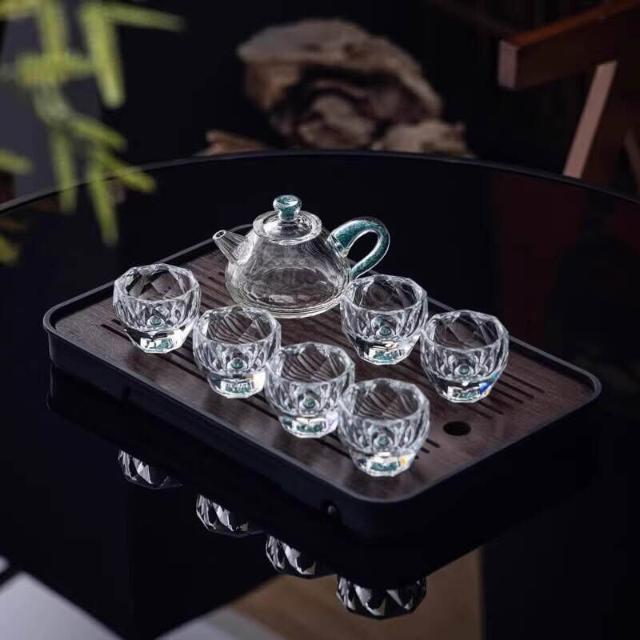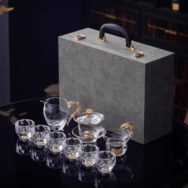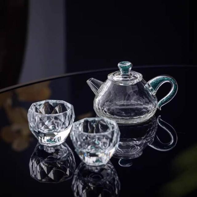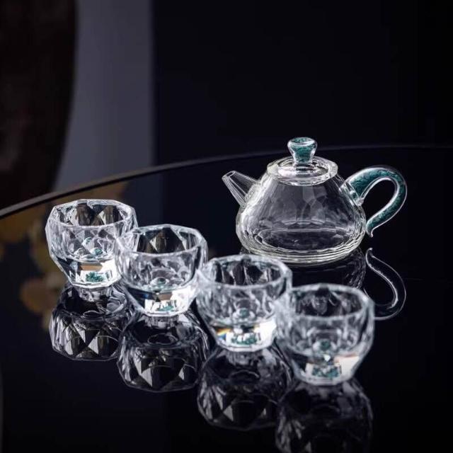 綠松石水晶玻璃茶具套裝輕奢蓋碗茶杯高端家用整套功夫茶具