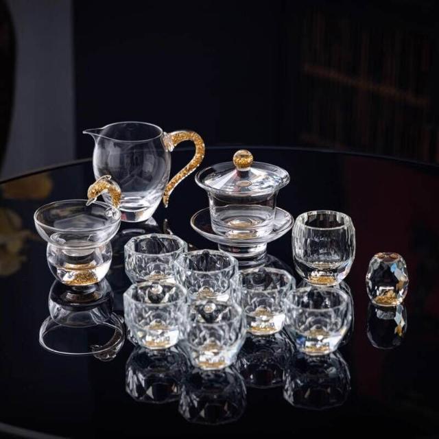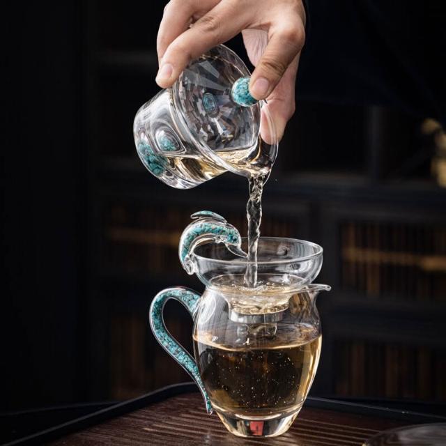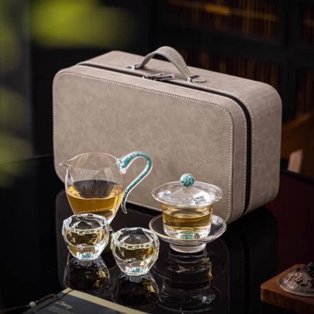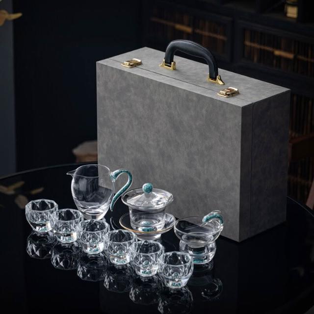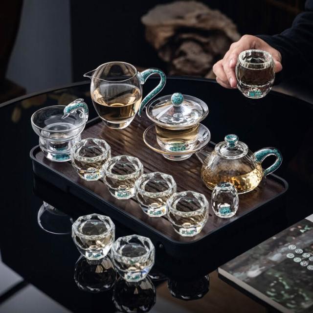 綠松石水晶玻璃茶具套裝輕奢蓋碗茶杯高端家用整套功夫茶具