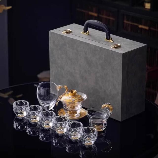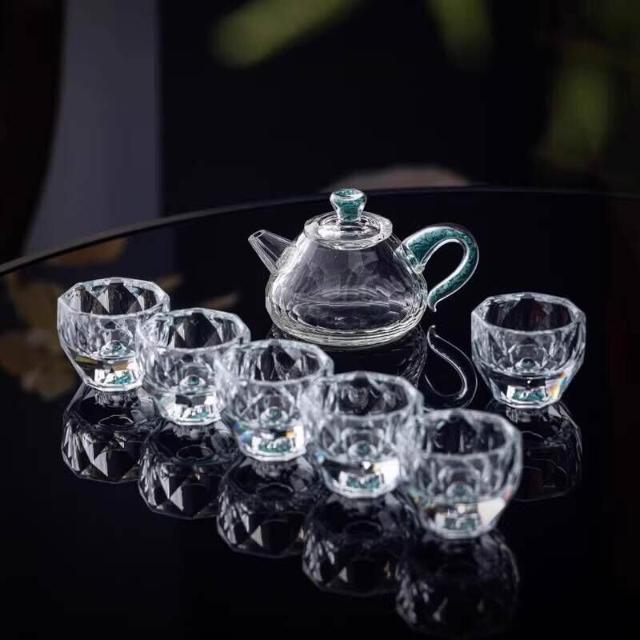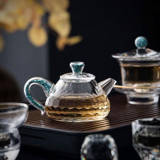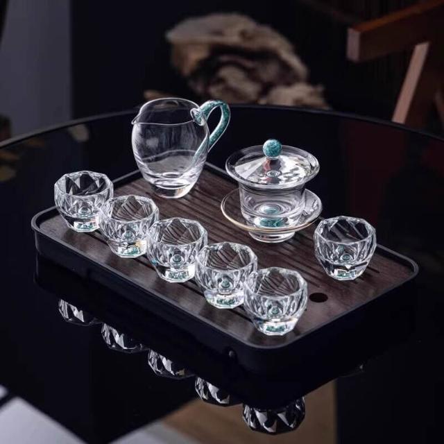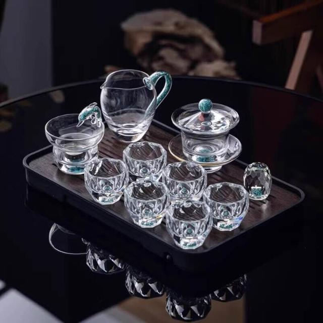 綠松石水晶玻璃茶具套裝輕奢蓋碗茶杯高端家用整套功夫茶具
