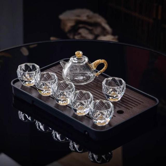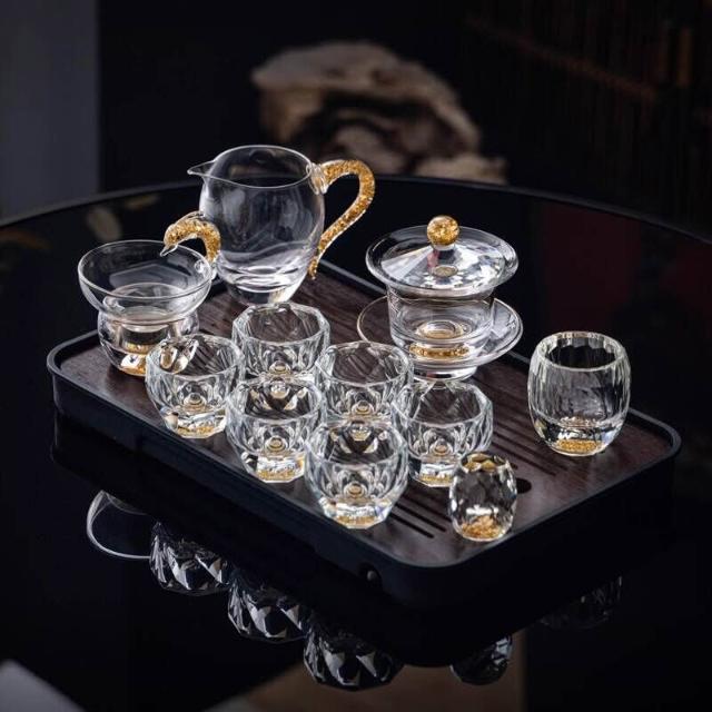 綠松石水晶玻璃茶具套裝輕奢蓋碗茶杯高端家用整套功夫茶具