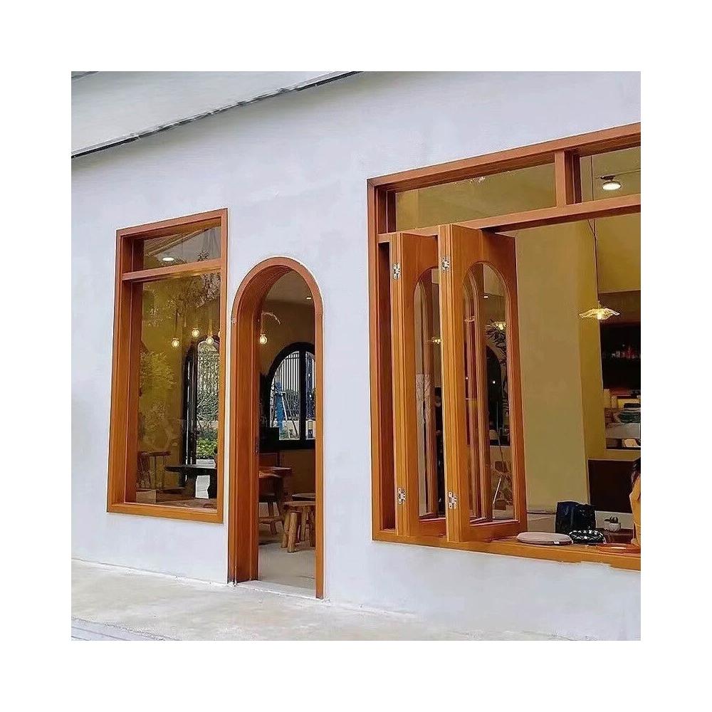 左右折疊窗實木推拉窗咖啡酒吧室內裝飾木窗原木松木折疊門窗