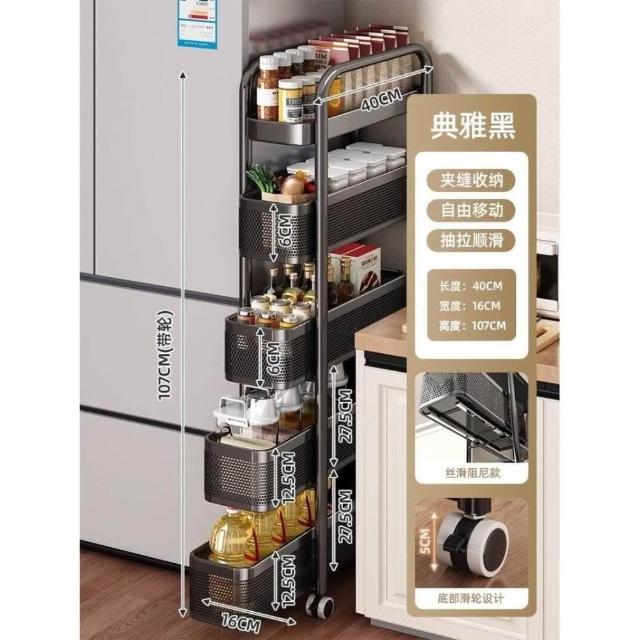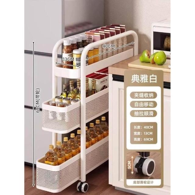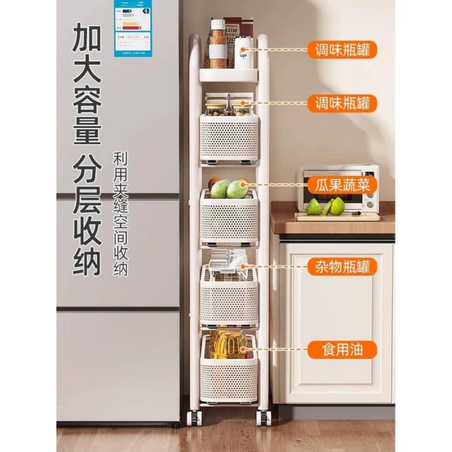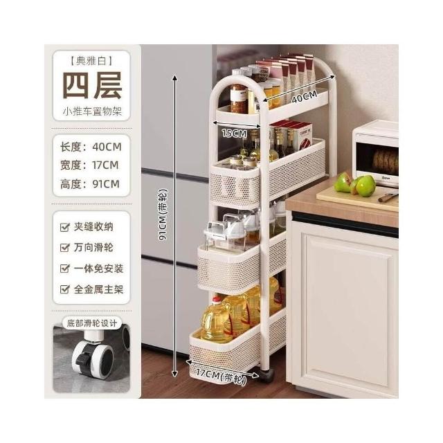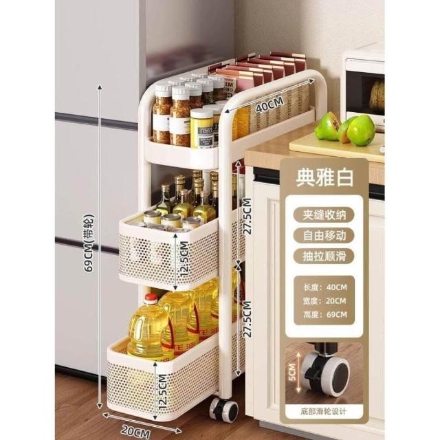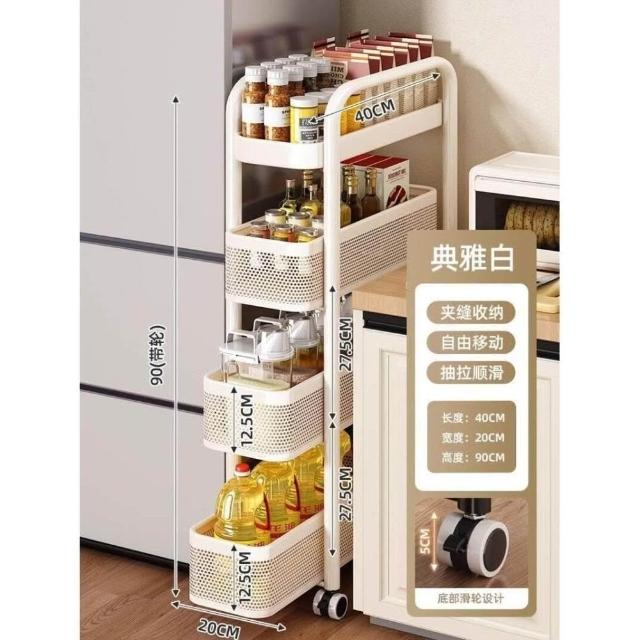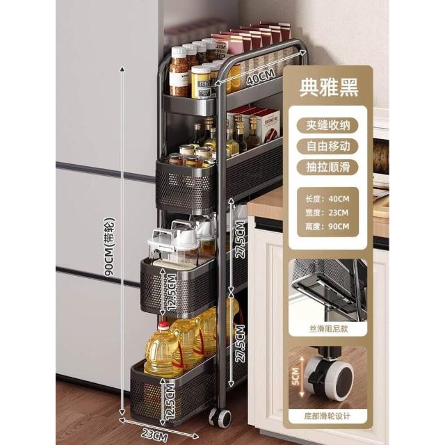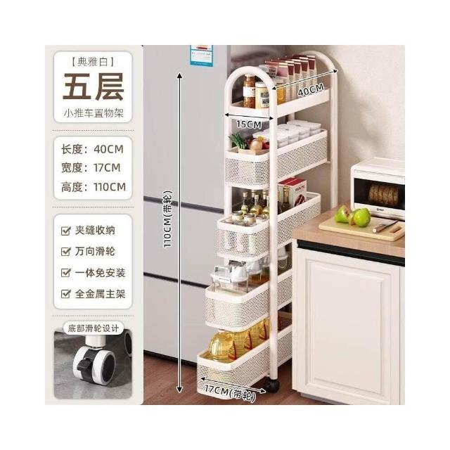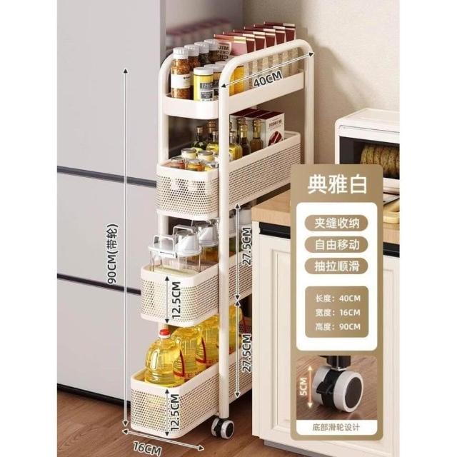 廚房夾縫置物架落地多層冰箱側面抽拉櫃極窄縫隙收納櫃小推車