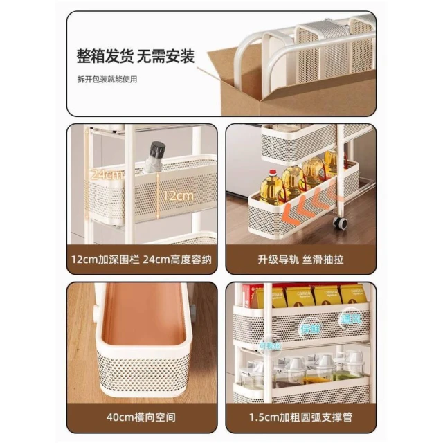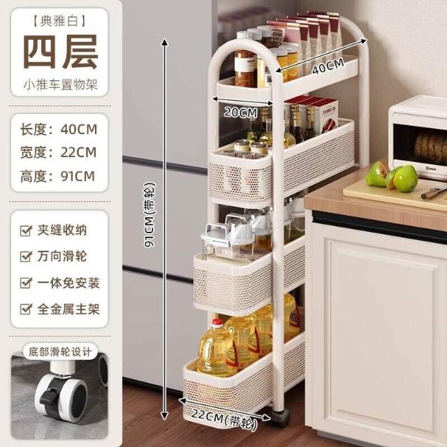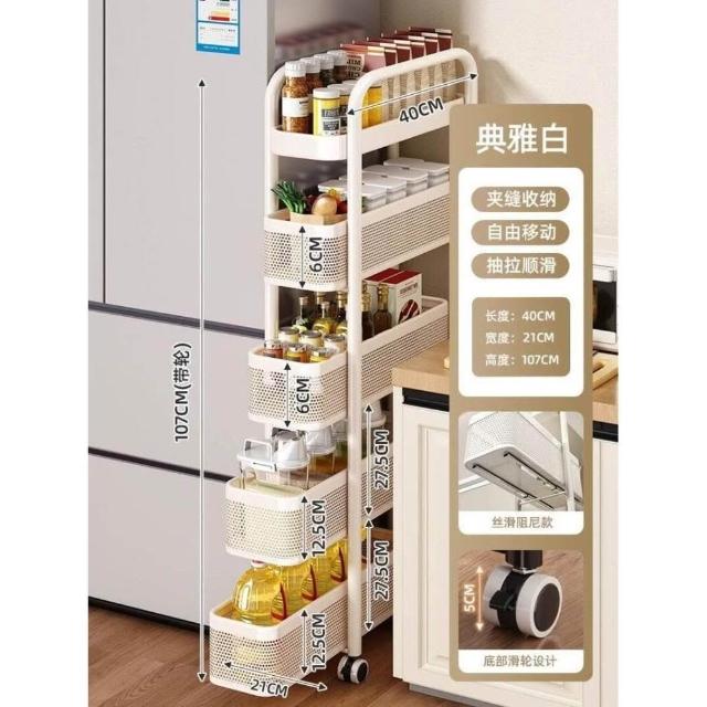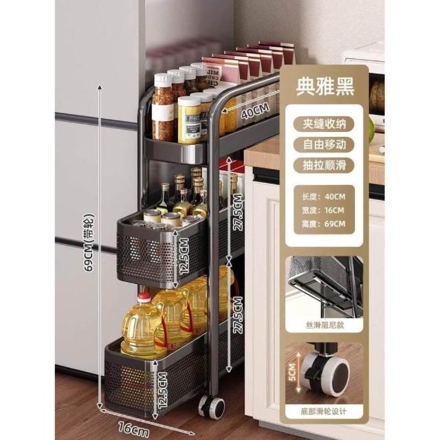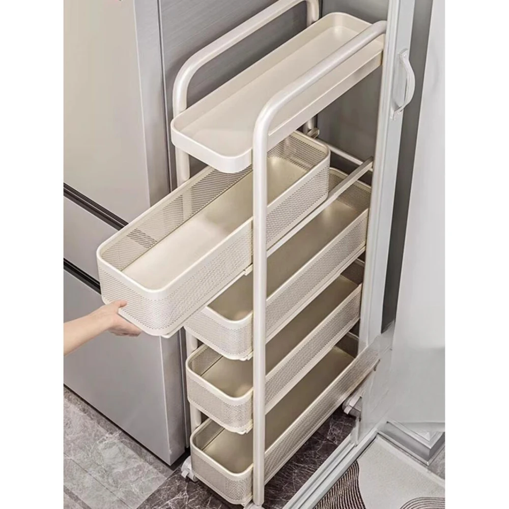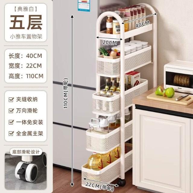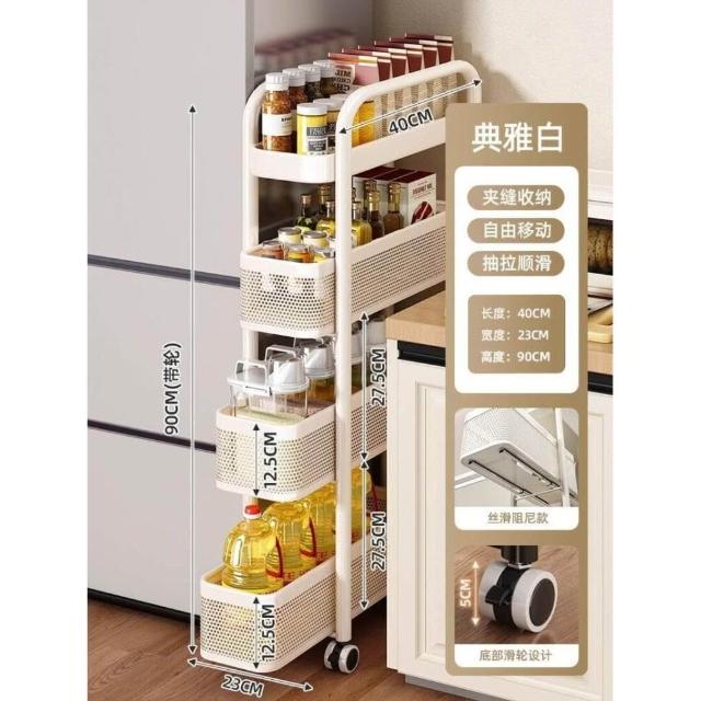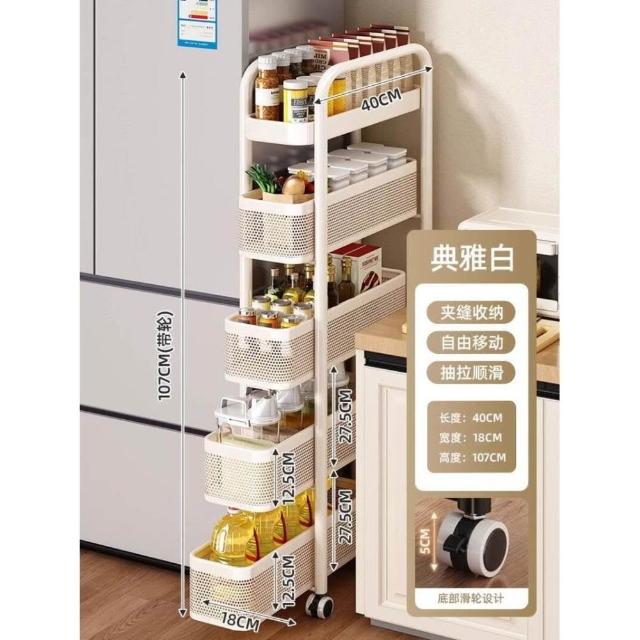 廚房夾縫置物架落地多層冰箱側面抽拉櫃極窄縫隙收納櫃小推車