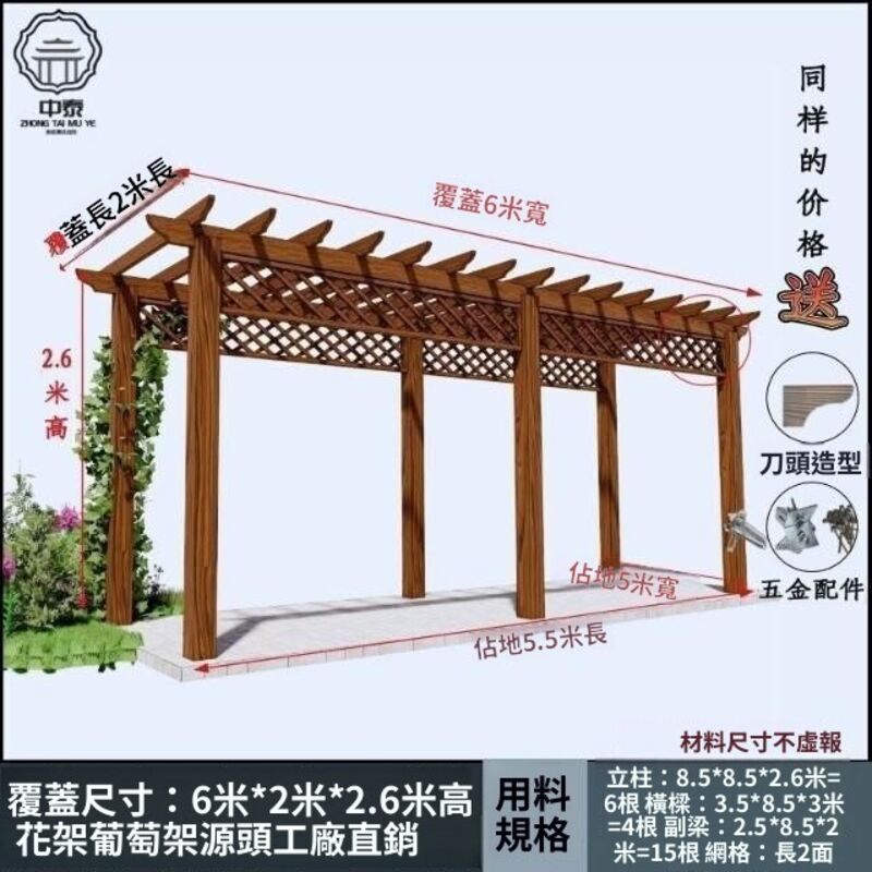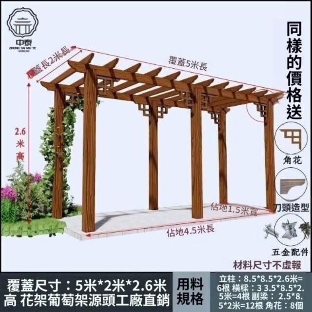 防腐木碳化木葡萄架爬藤花架涼亭庭院葡萄架遮陽棚戶外車庫
