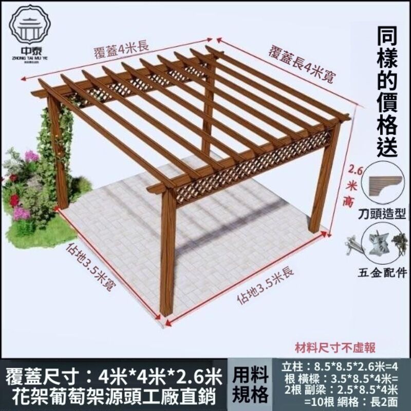 防腐木碳化木葡萄架爬藤花架涼亭庭院葡萄架遮陽棚戶外車庫