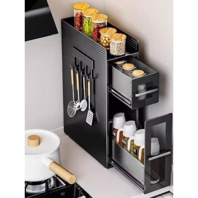 廚房轉角調料品置物架臺面窄邊墻角收納架櫥櫃側面抽拉極窄儲物櫃