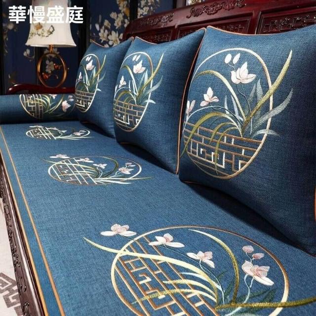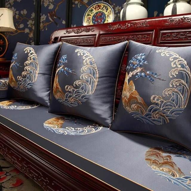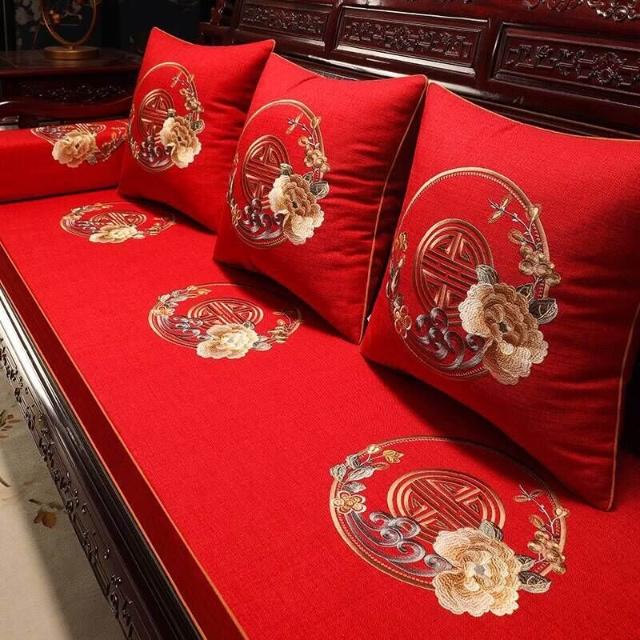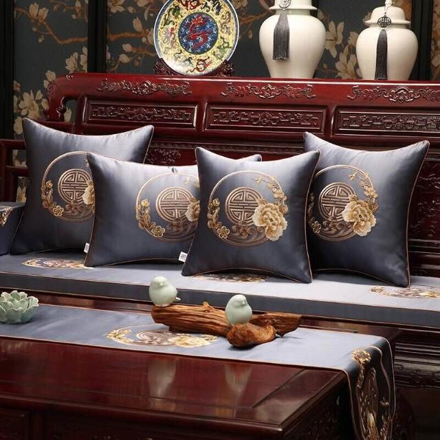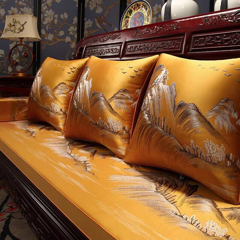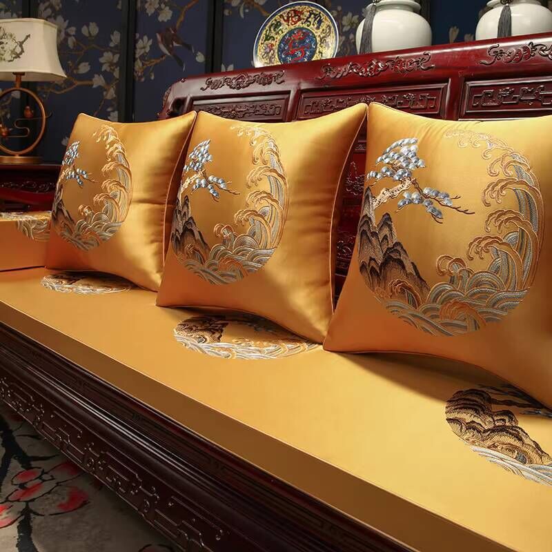 新中式紅木沙發坐墊定製實木家具沙發墊罩套輕奢羅漢床五件套墊子