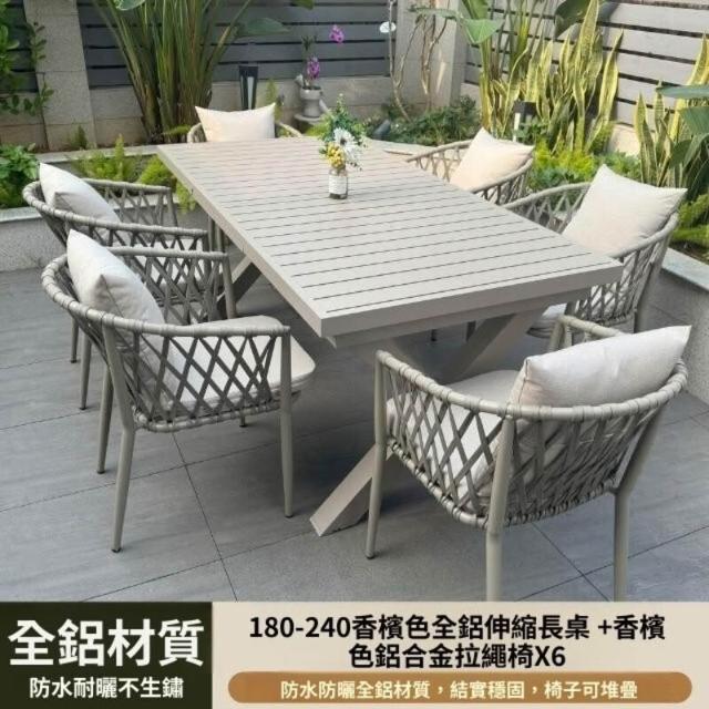 戶外桌椅庭院別墅室外花園露台藤椅組合露天休閒編繩鋁合金桌椅