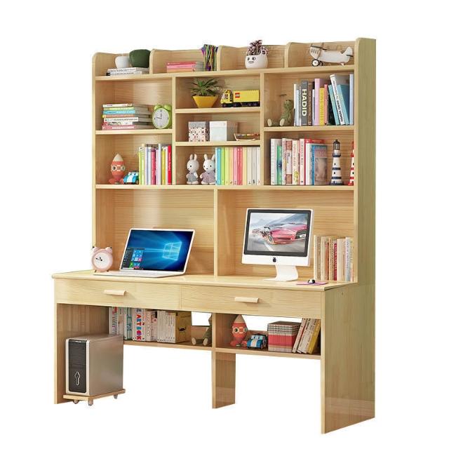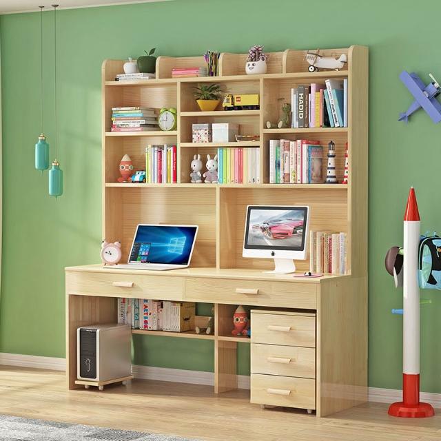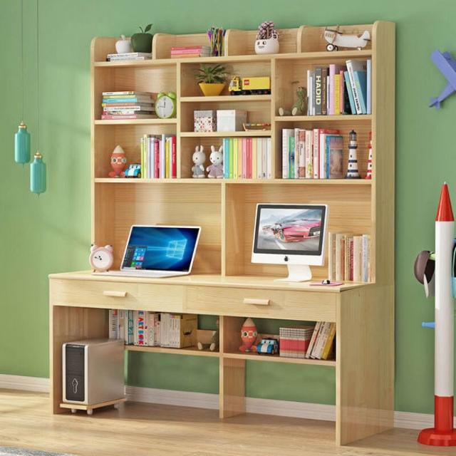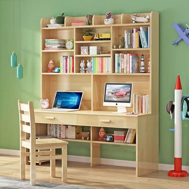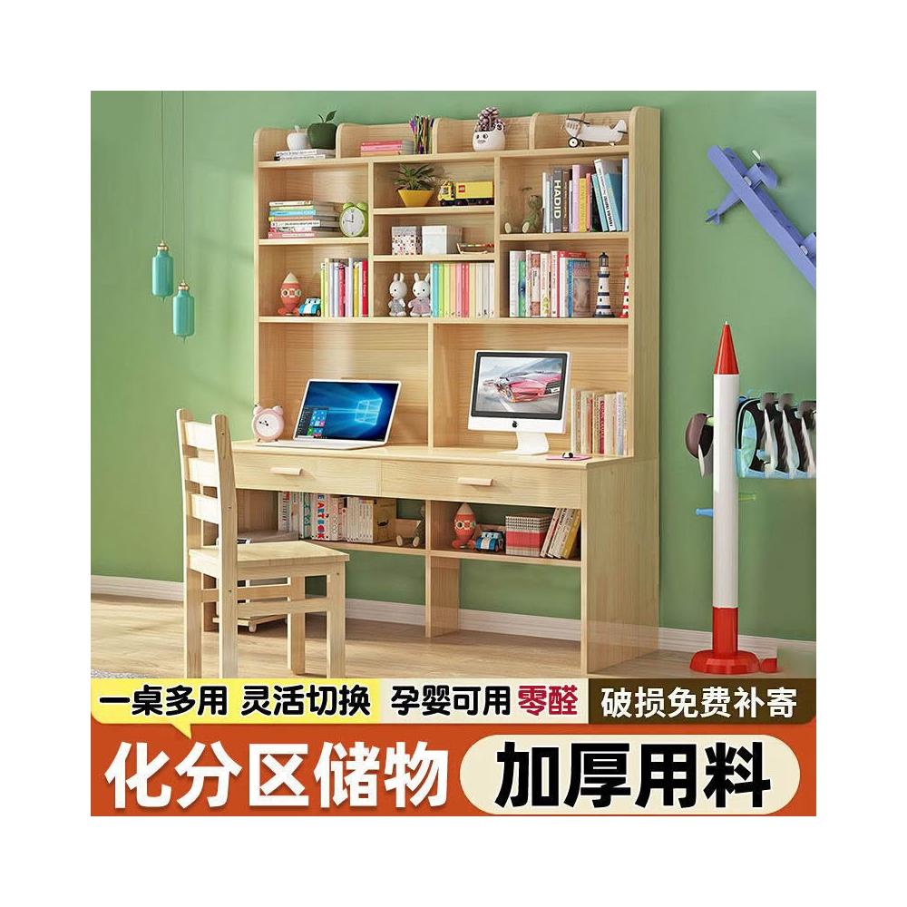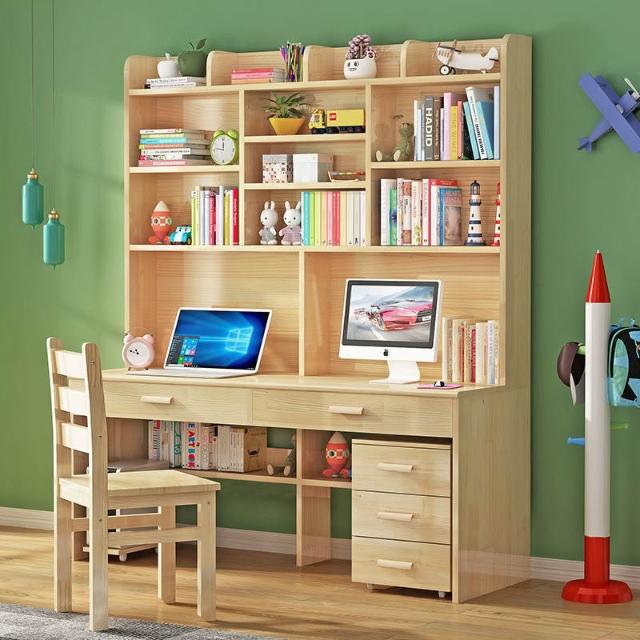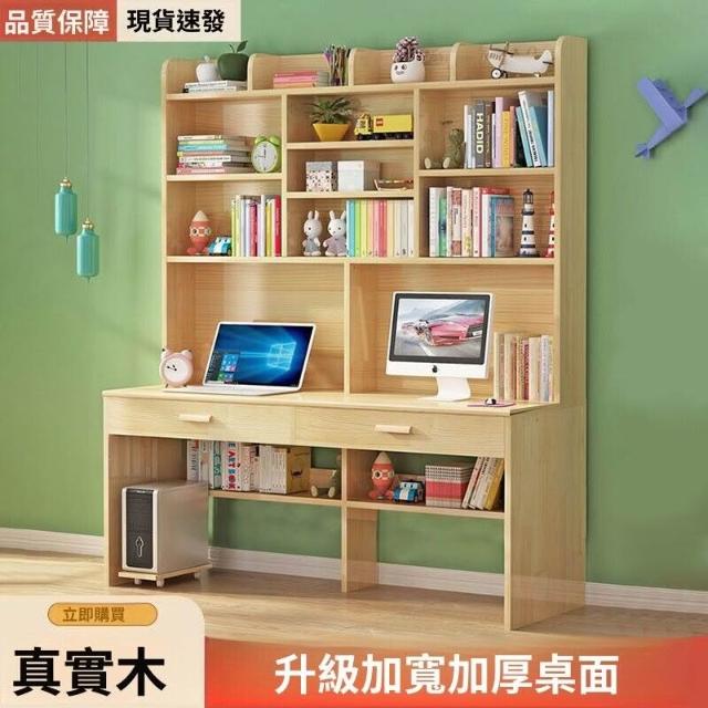 實木書桌書架一體桌現代簡約家用學生電腦臺式桌臥室兒童寫字桌子
