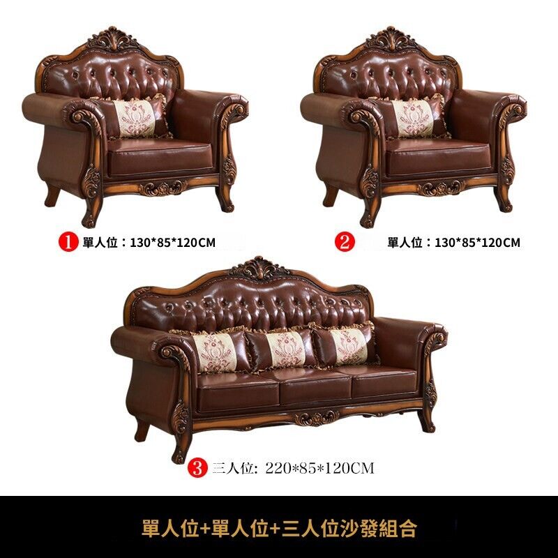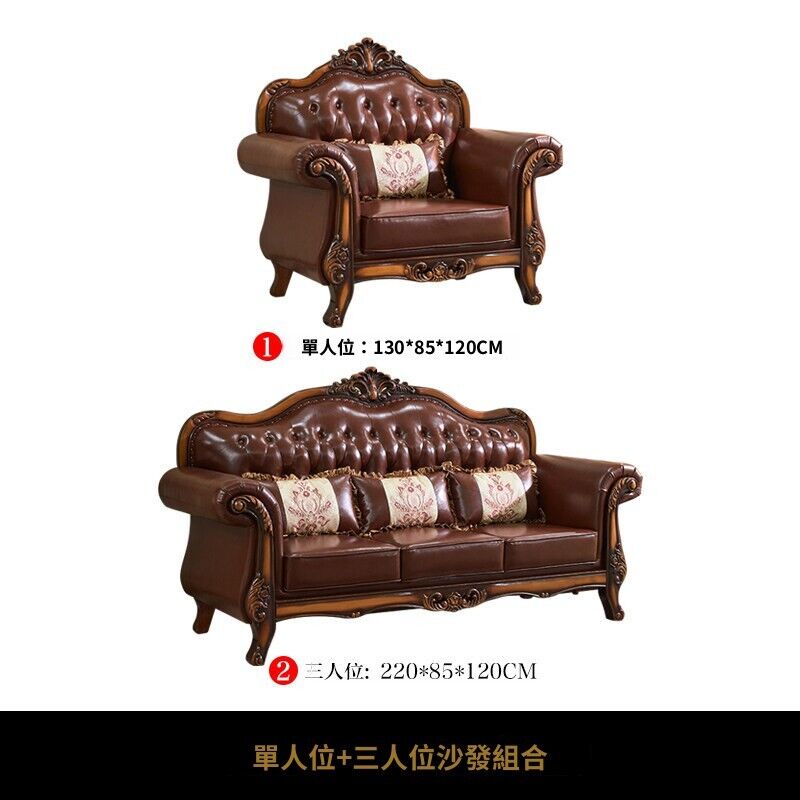 歐式真皮沙發123組合小戶型客廳實木雕花復古風美式豪華家具簡歐