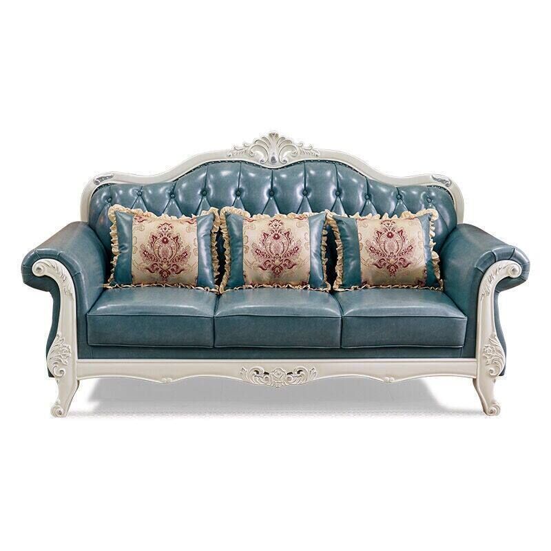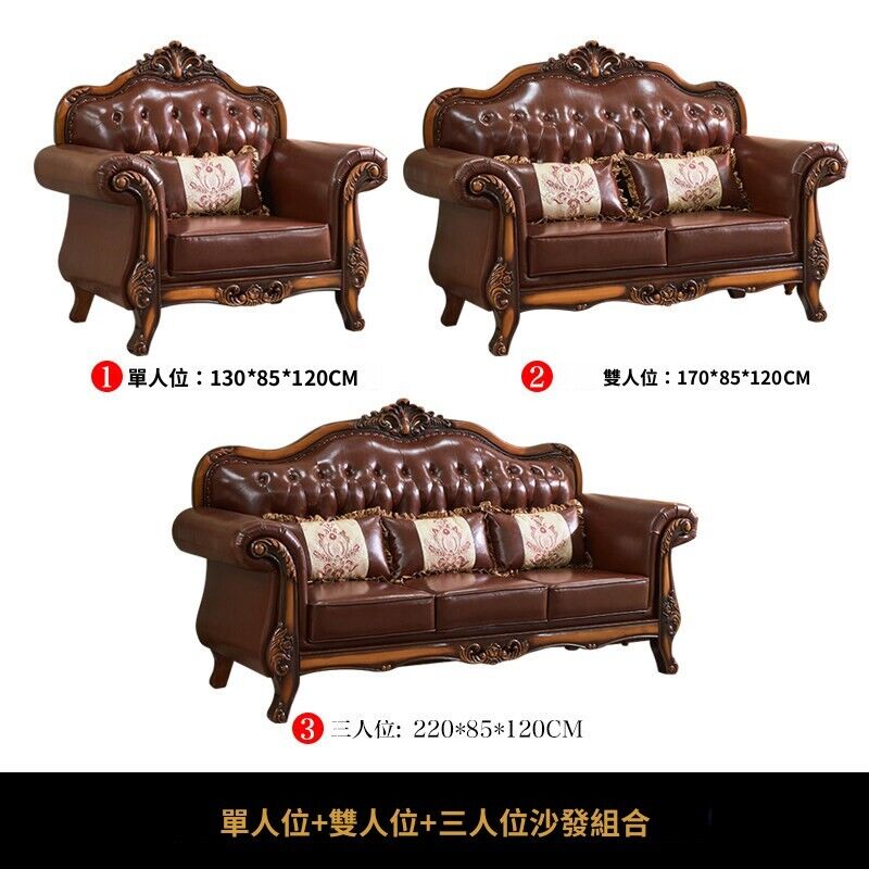 歐式真皮沙發123組合小戶型客廳實木雕花復古風美式豪華家具簡歐
