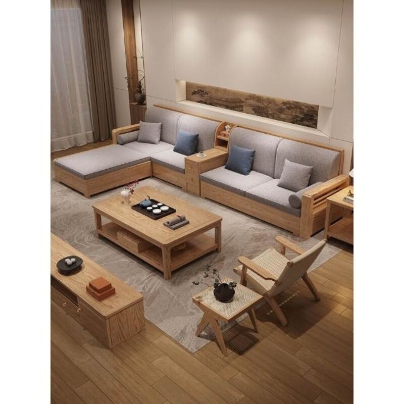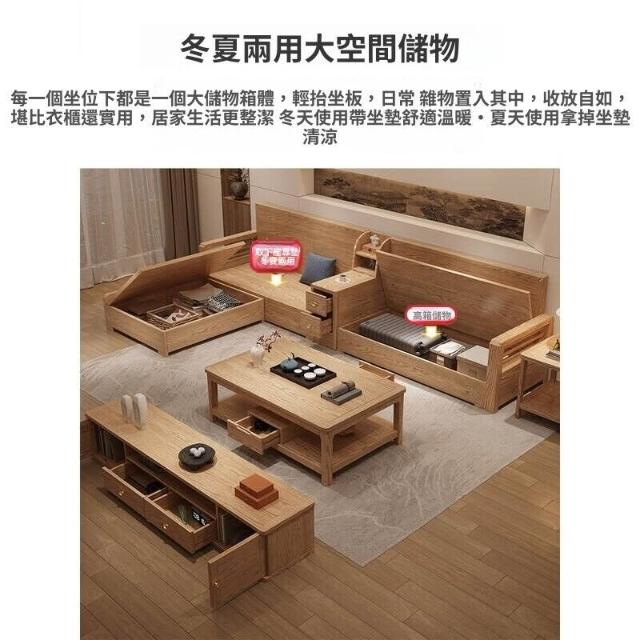 白蠟木實木沙發客廳冬夏兩用新中式小戶型直排布藝沙發床儲物家具