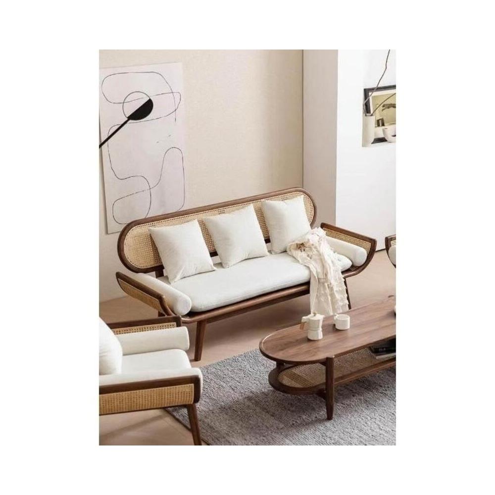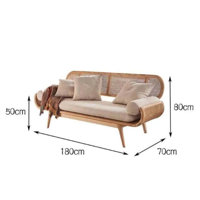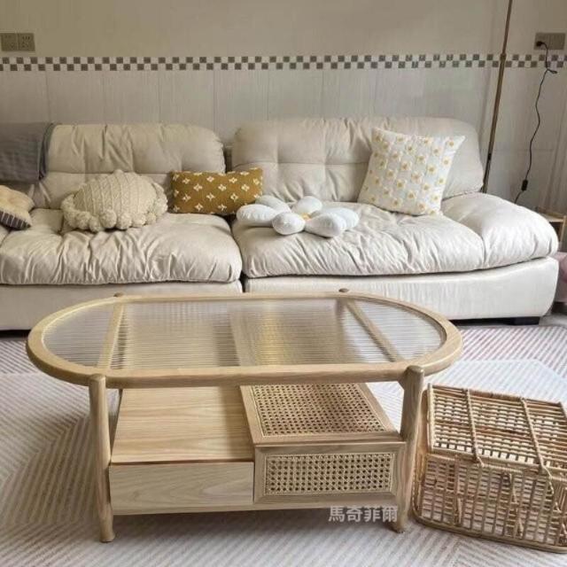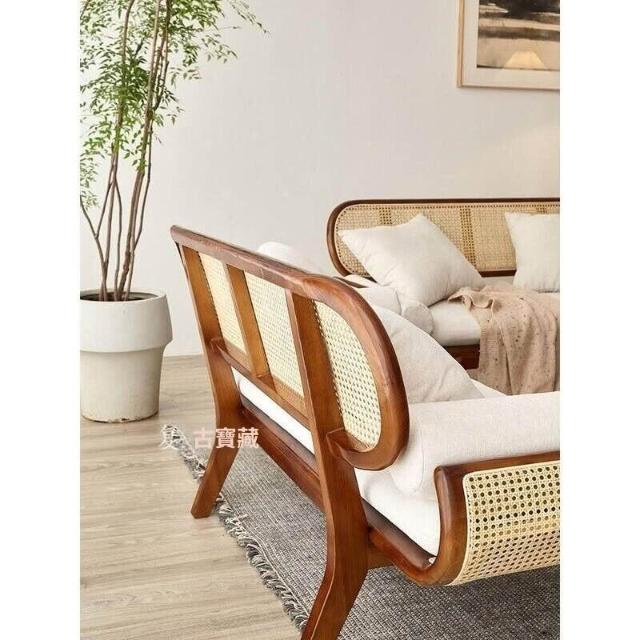 北歐實木藤編沙發家用小戶型三人位雙人茶几組合民宿復古休閒藤椅
