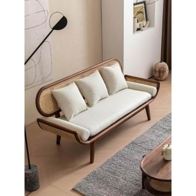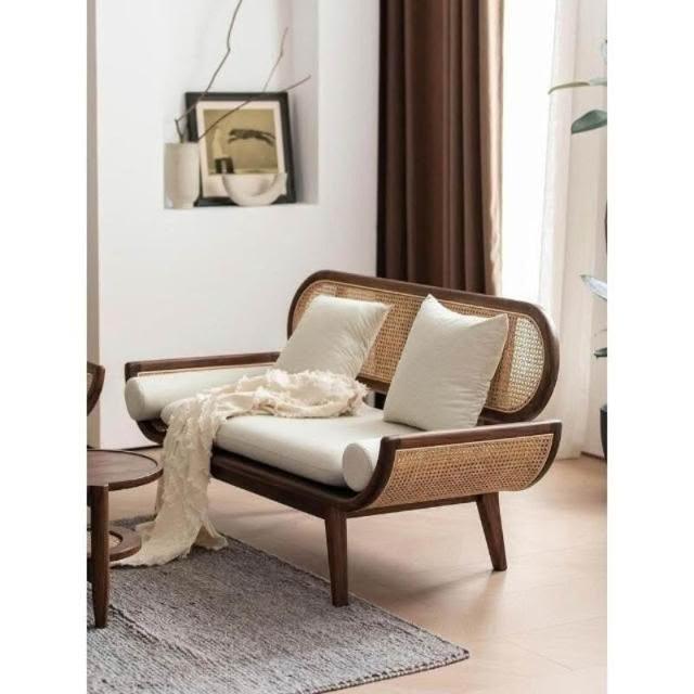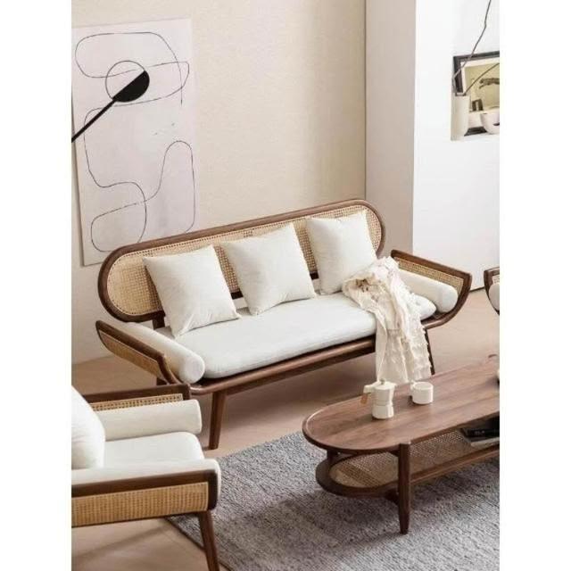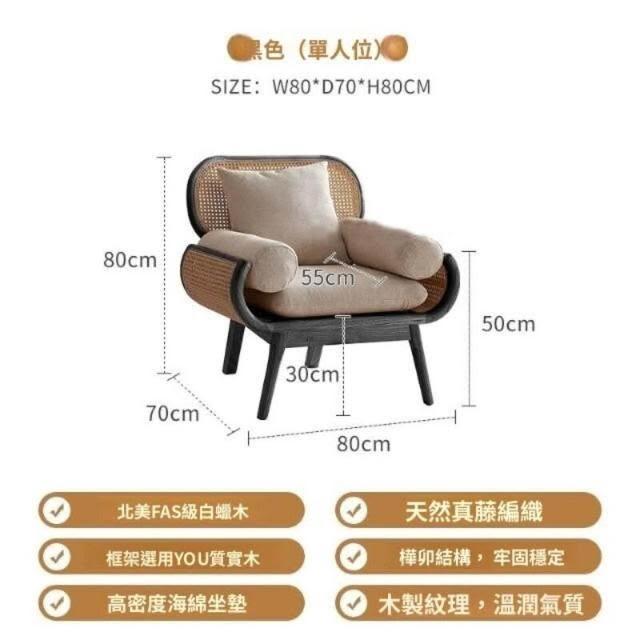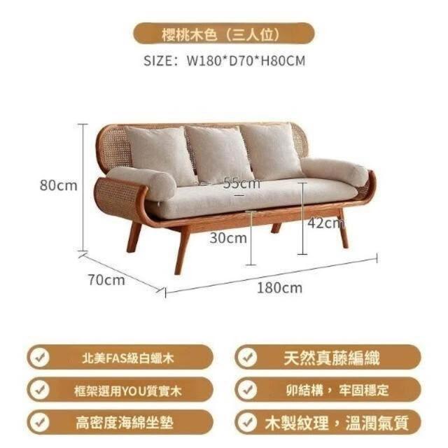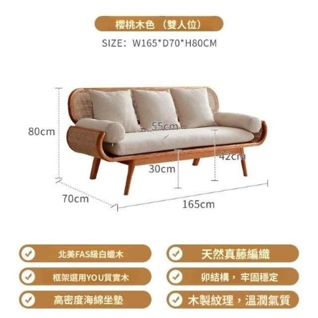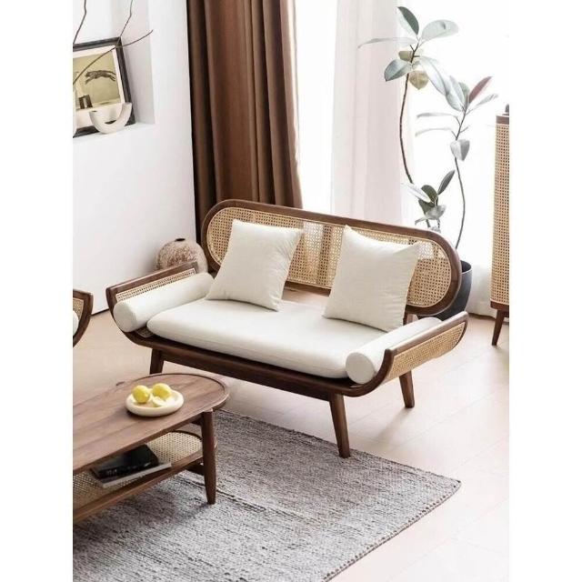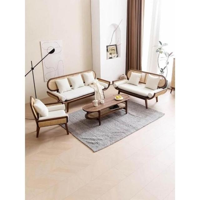 北歐實木藤編沙發家用小戶型三人位雙人茶几組合民宿復古休閒藤椅