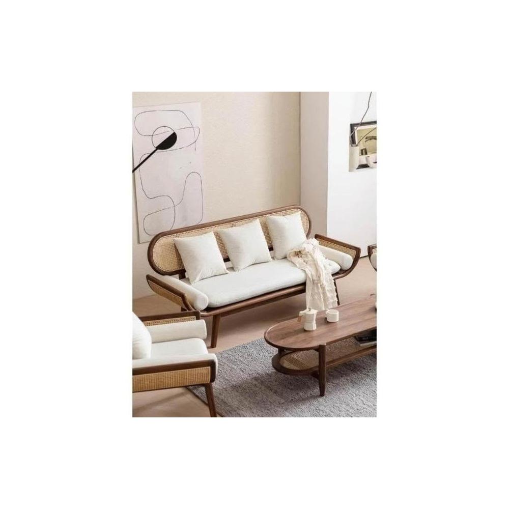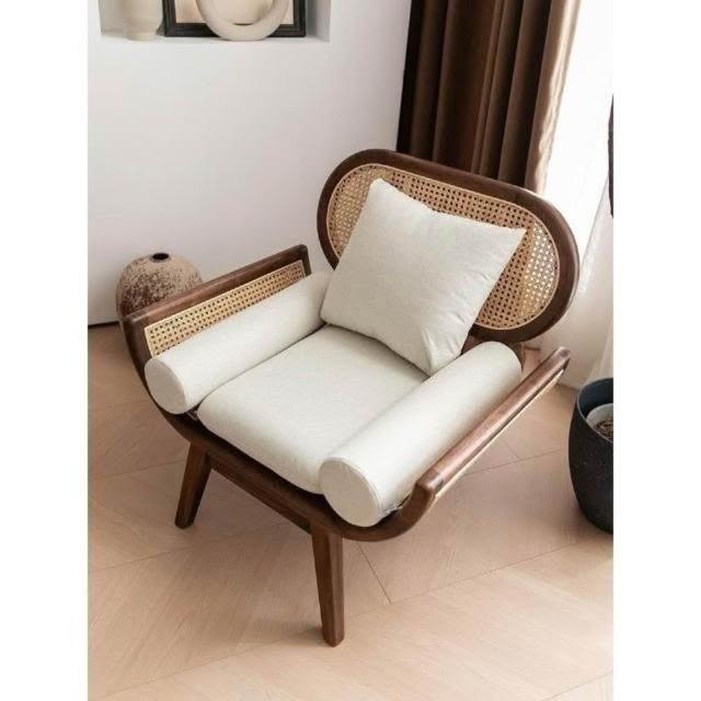 北歐實木藤編沙發家用小戶型三人位雙人茶几組合民宿復古休閒藤椅