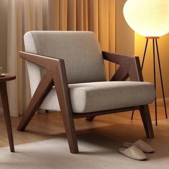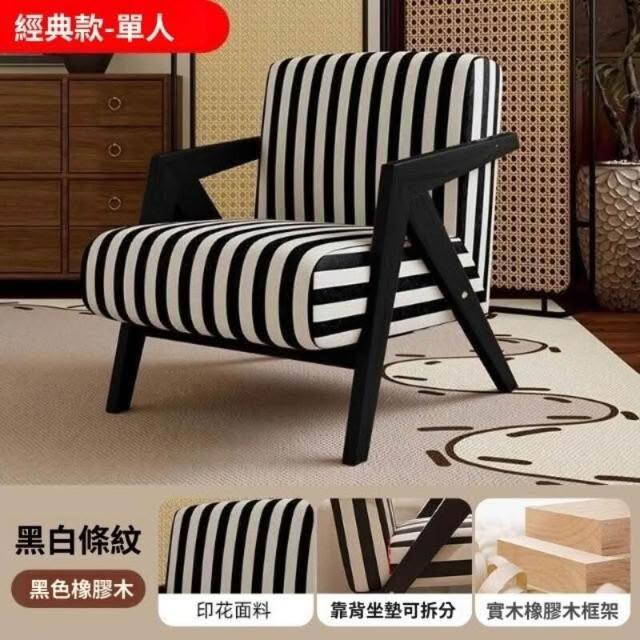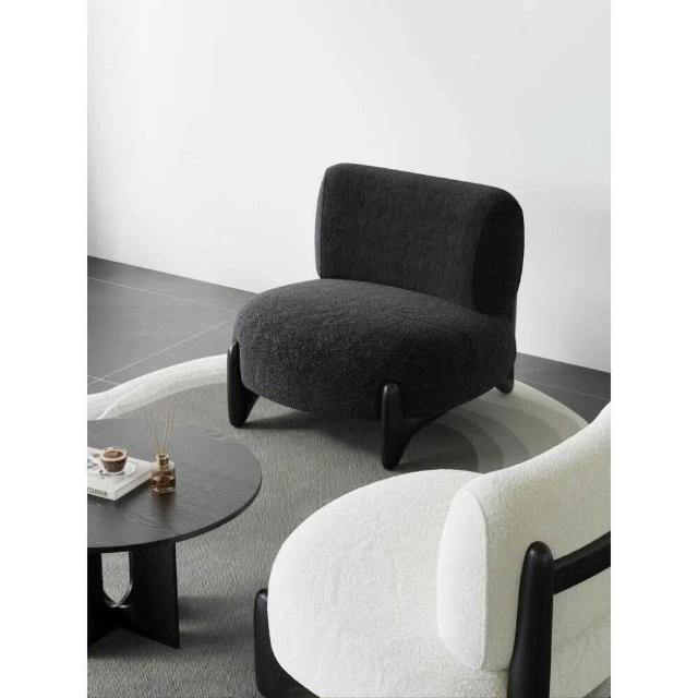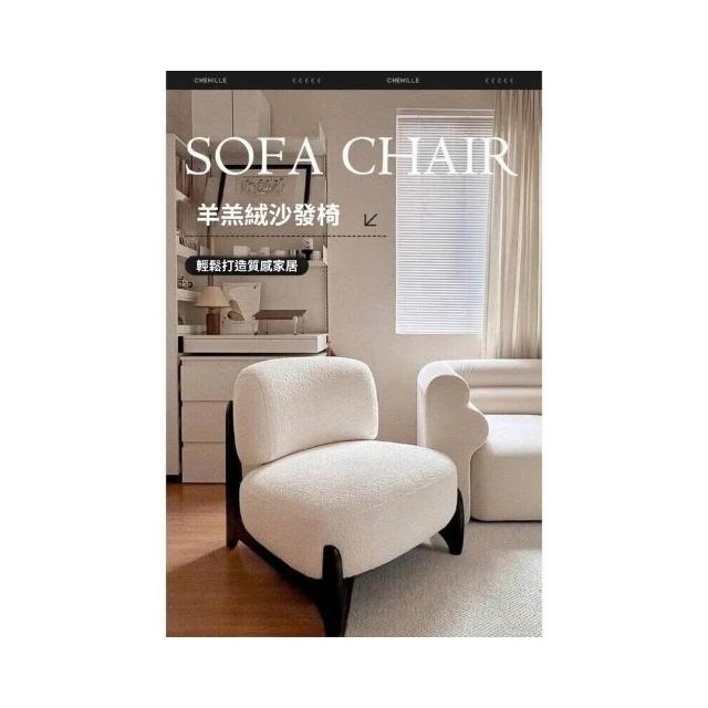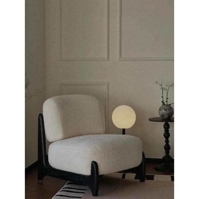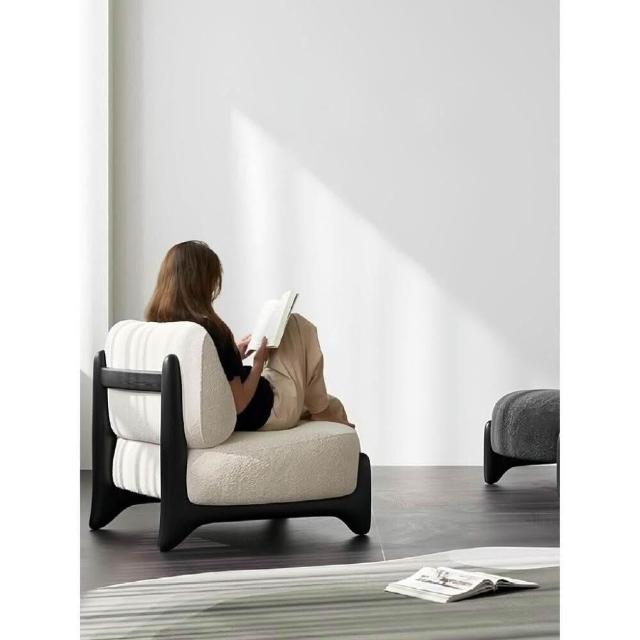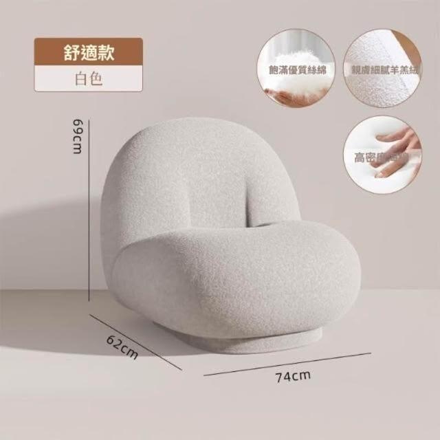 奶油風實木沙發椅極簡羊羔絨單人懶人躺椅日式小戶型休閒沙發座椅
