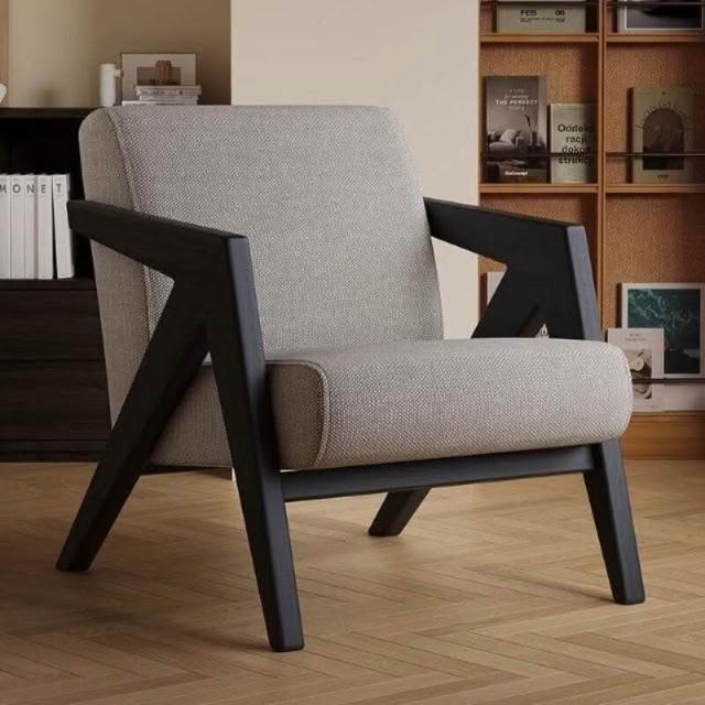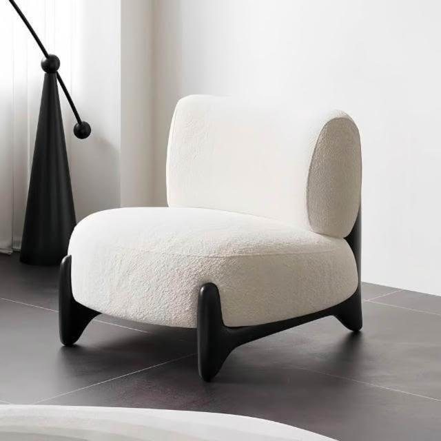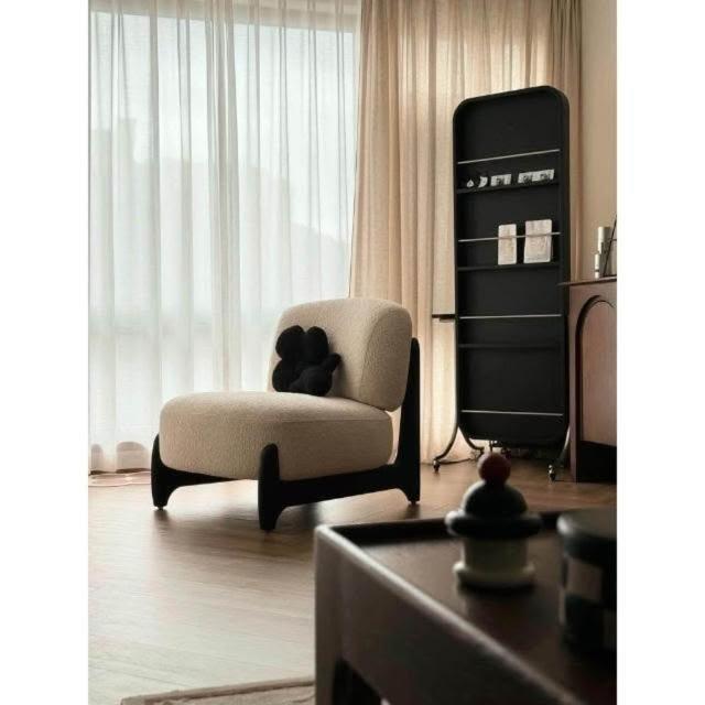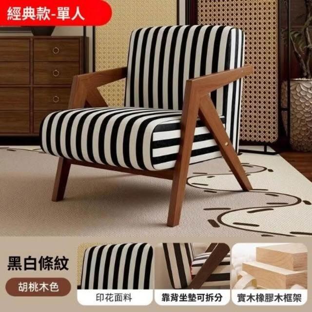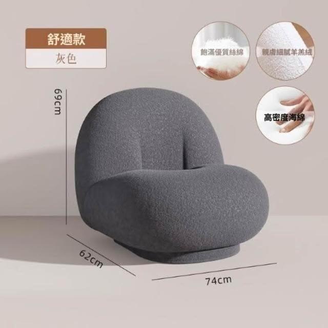 奶油風實木沙發椅極簡羊羔絨單人懶人躺椅日式小戶型休閒沙發座椅