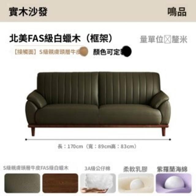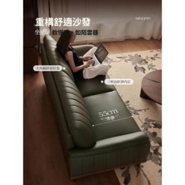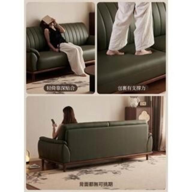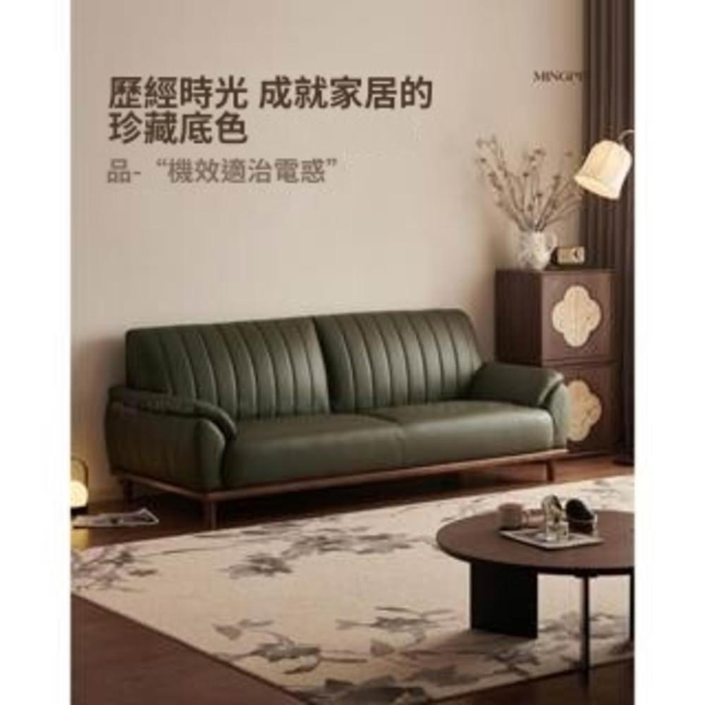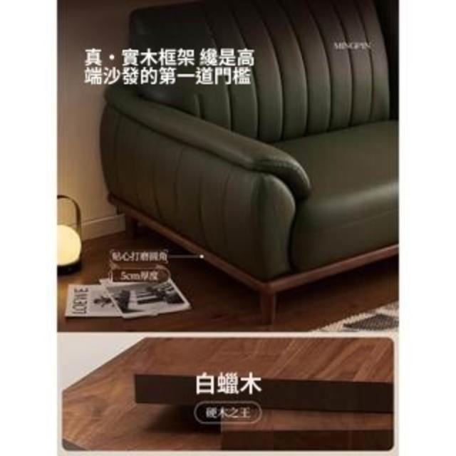 實木真皮沙發客廳小戶型復古風頭層牛皮三人墨綠色全青皮沙發直排