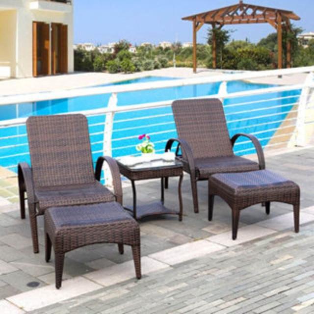 戶外躺床陽臺休閒躺椅藤編午睡單人折疊庭院泳池沙灘室外茶幾組合