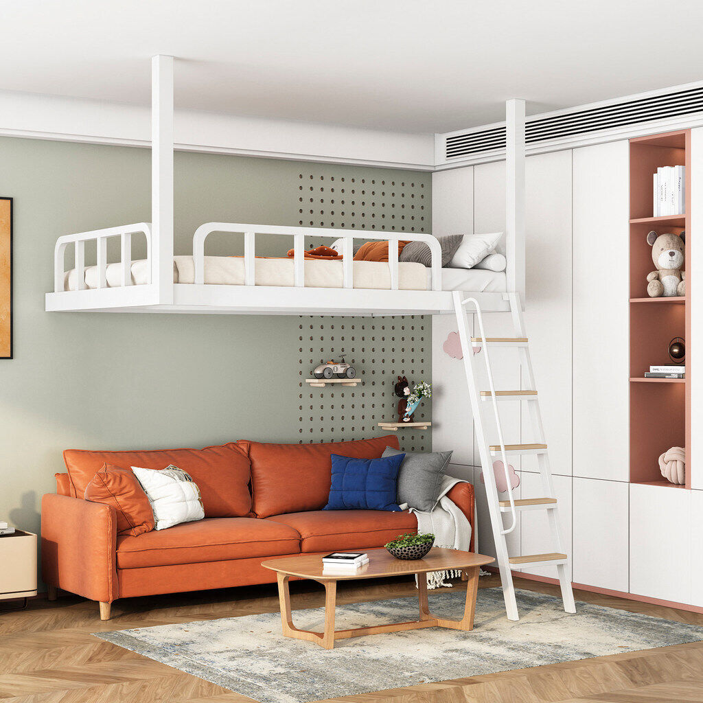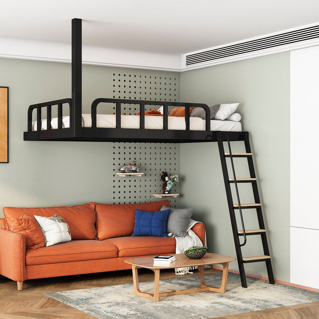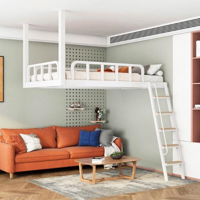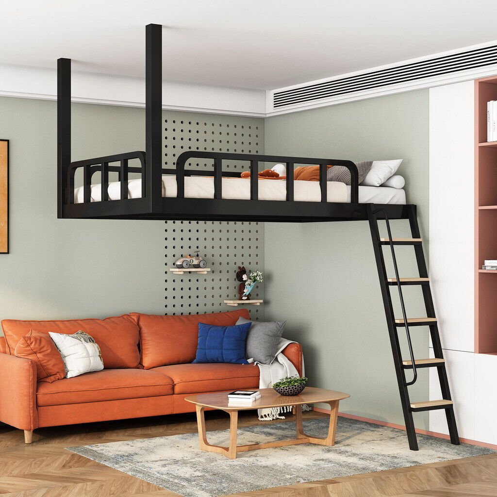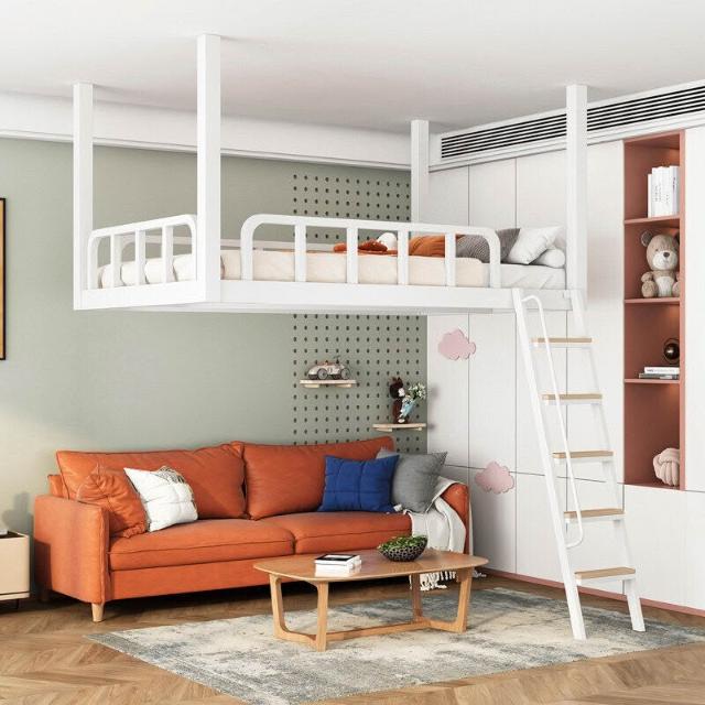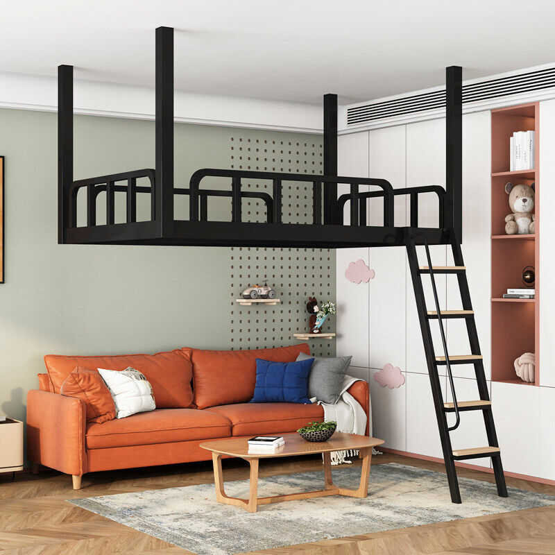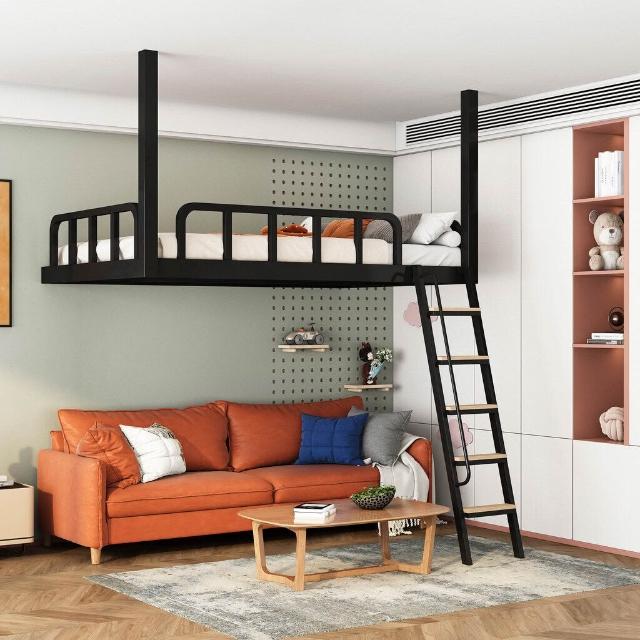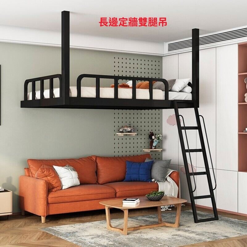 家用小戶型閣樓床鐵藝省空間上床下空單上層吊床懸空床上床下桌