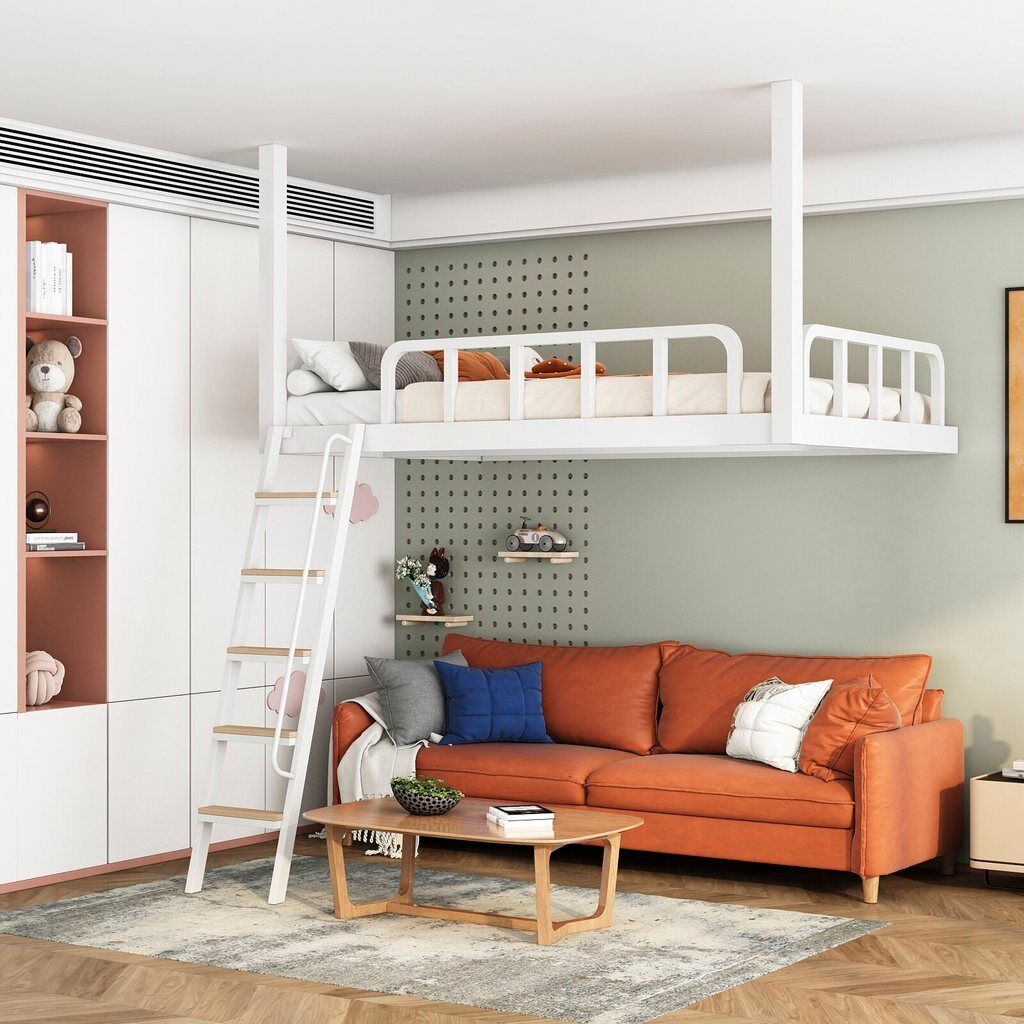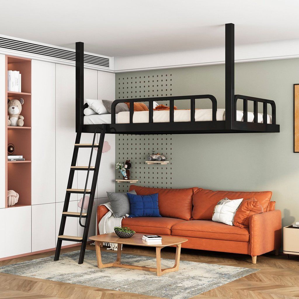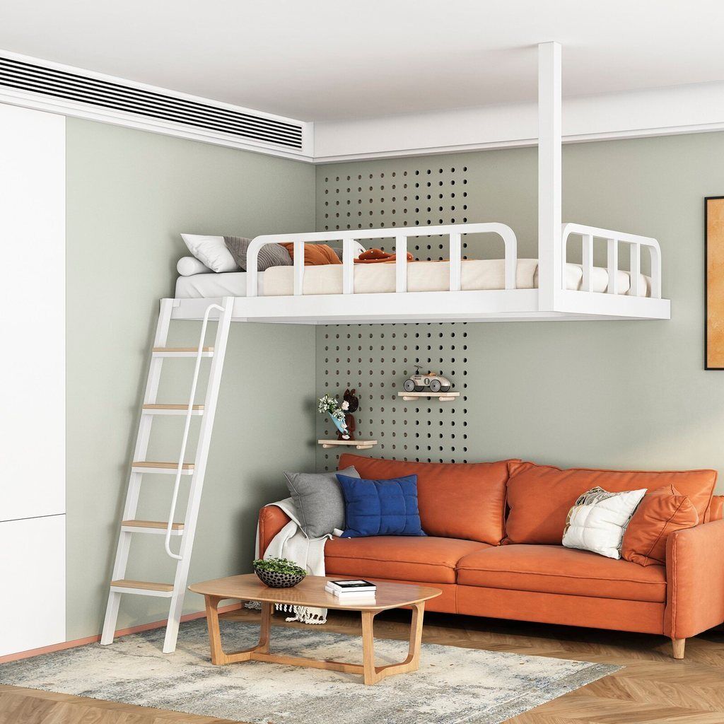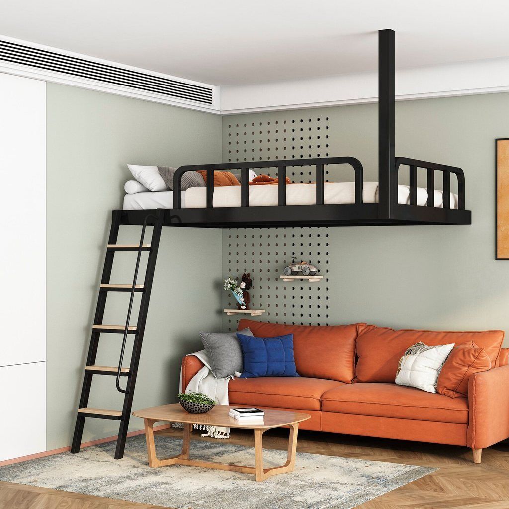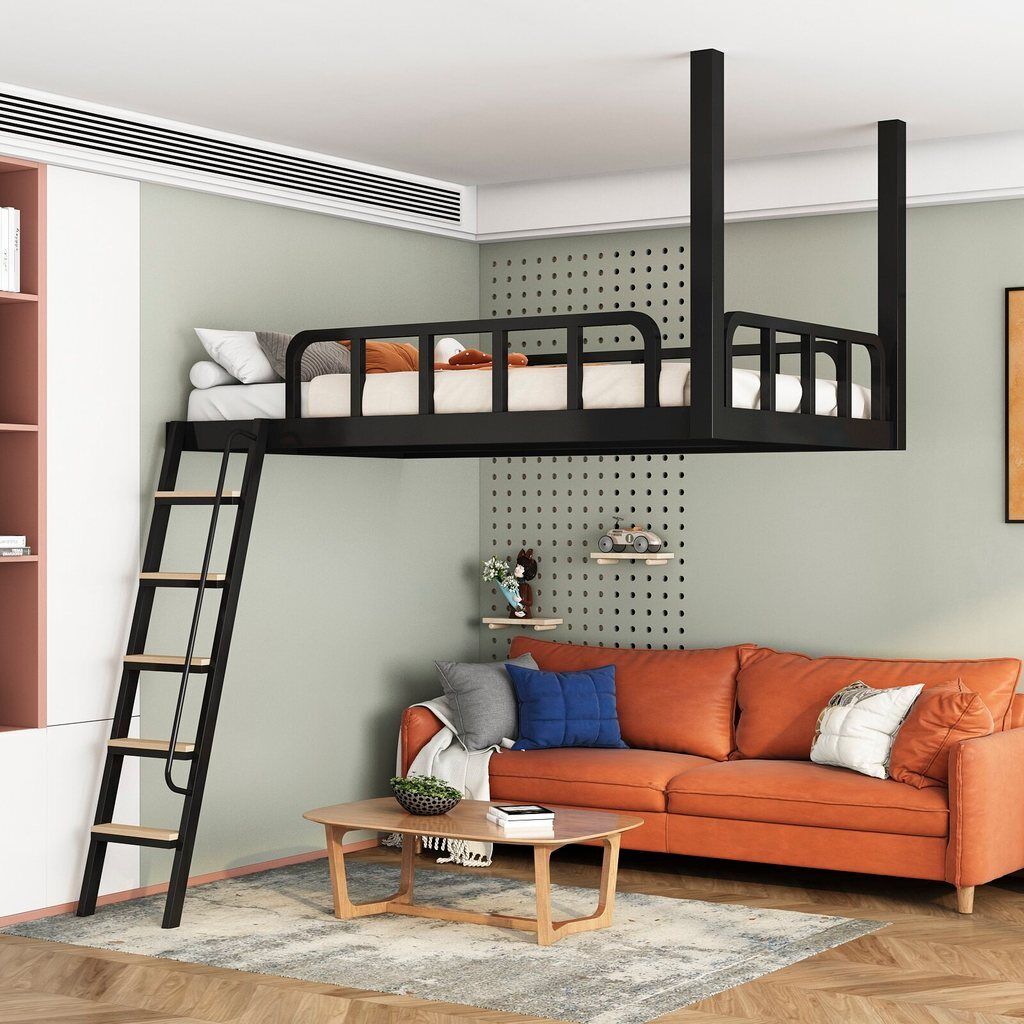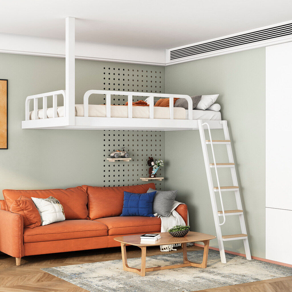家用小戶型閣樓床鐵藝省空間上床下空單上層吊床懸空床上床下桌