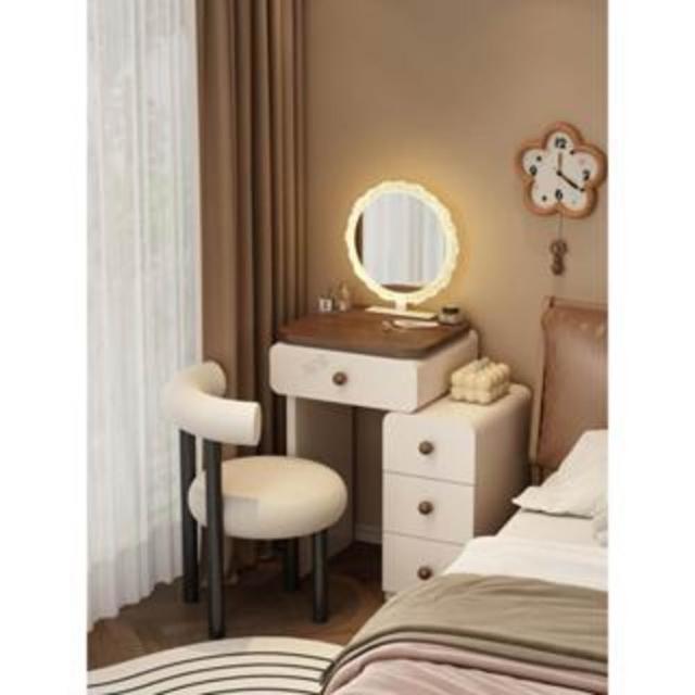 中古風迷你梳妝臺臥室胡桃木色復古實木現代簡約奶油化妝桌收納櫃