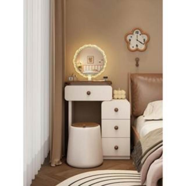 中古風迷你梳妝臺臥室胡桃木色復古實木現代簡約奶油化妝桌收納櫃