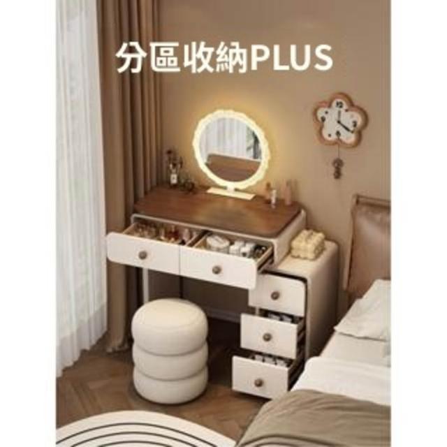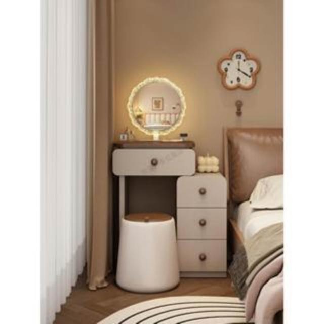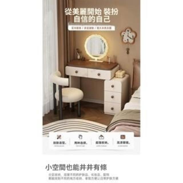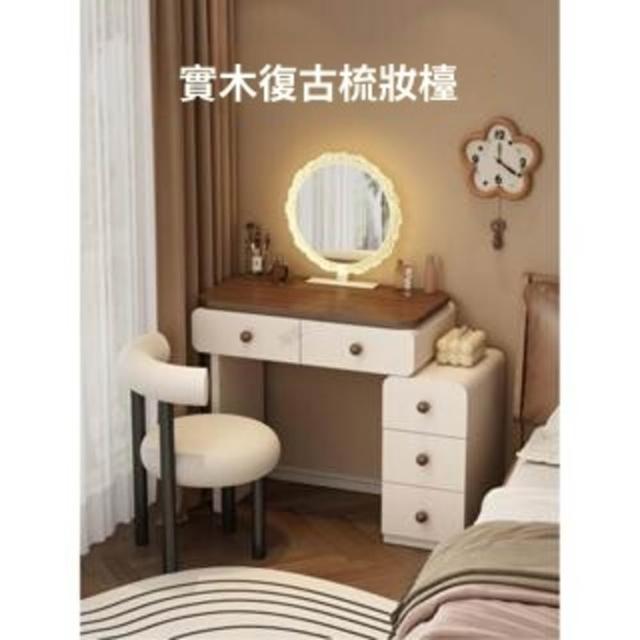 中古風迷你梳妝臺臥室胡桃木色復古實木現代簡約奶油化妝桌收納櫃