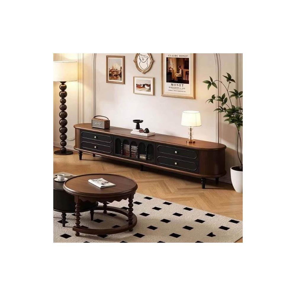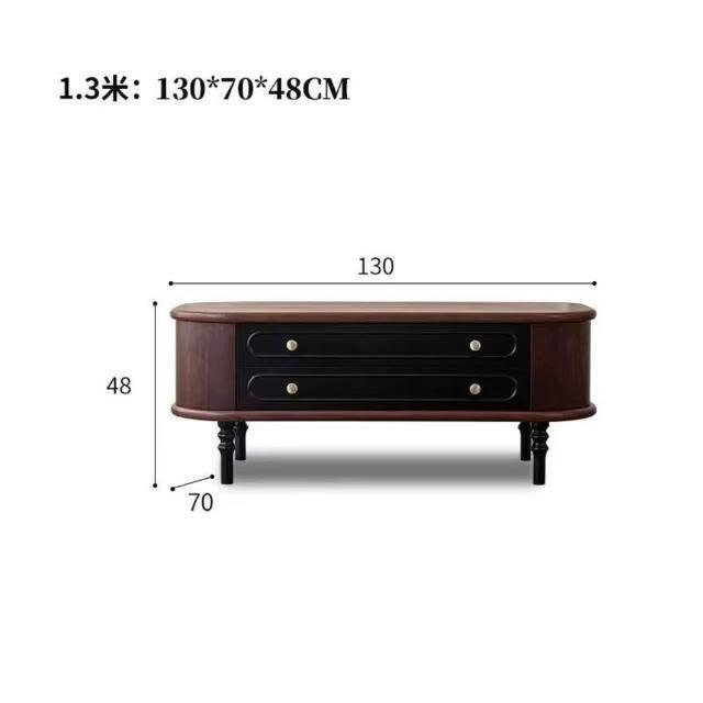 法式復古實木電視櫃胡桃黑色美式客廳電視機櫃茶幾組合儲物地櫃