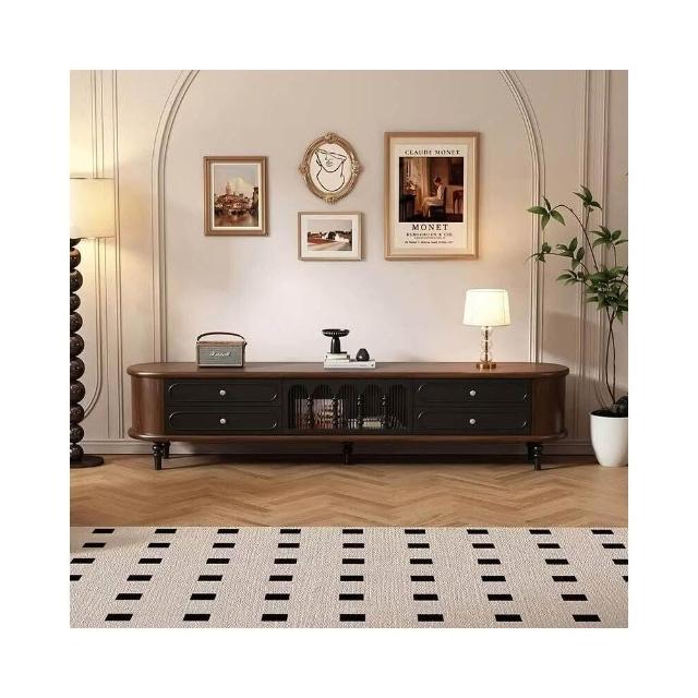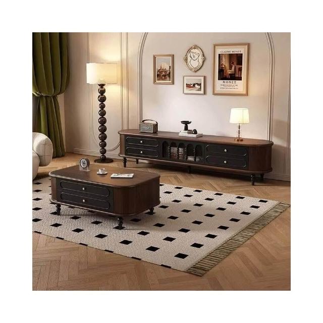 法式復古實木電視櫃胡桃黑色美式客廳電視機櫃茶幾組合儲物地櫃