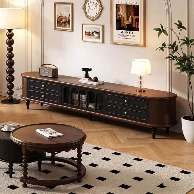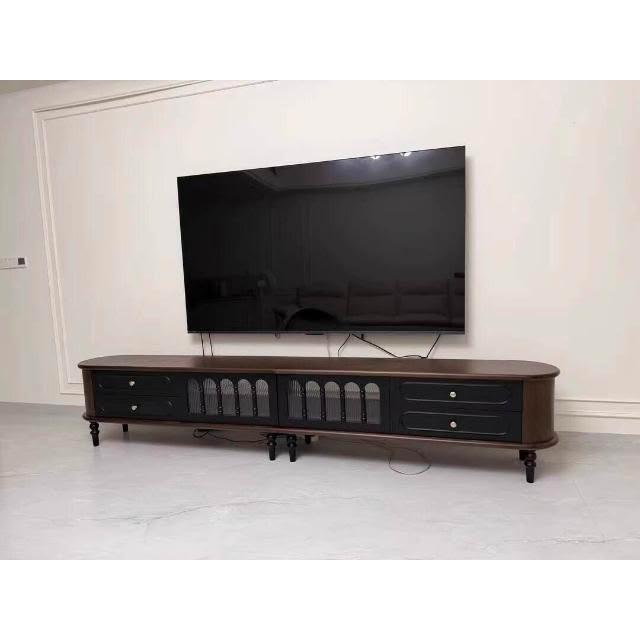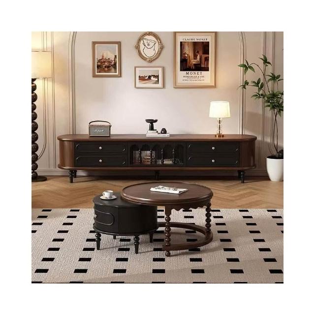 法式復古實木電視櫃胡桃黑色美式客廳電視機櫃茶幾組合儲物地櫃